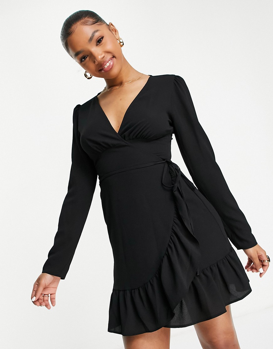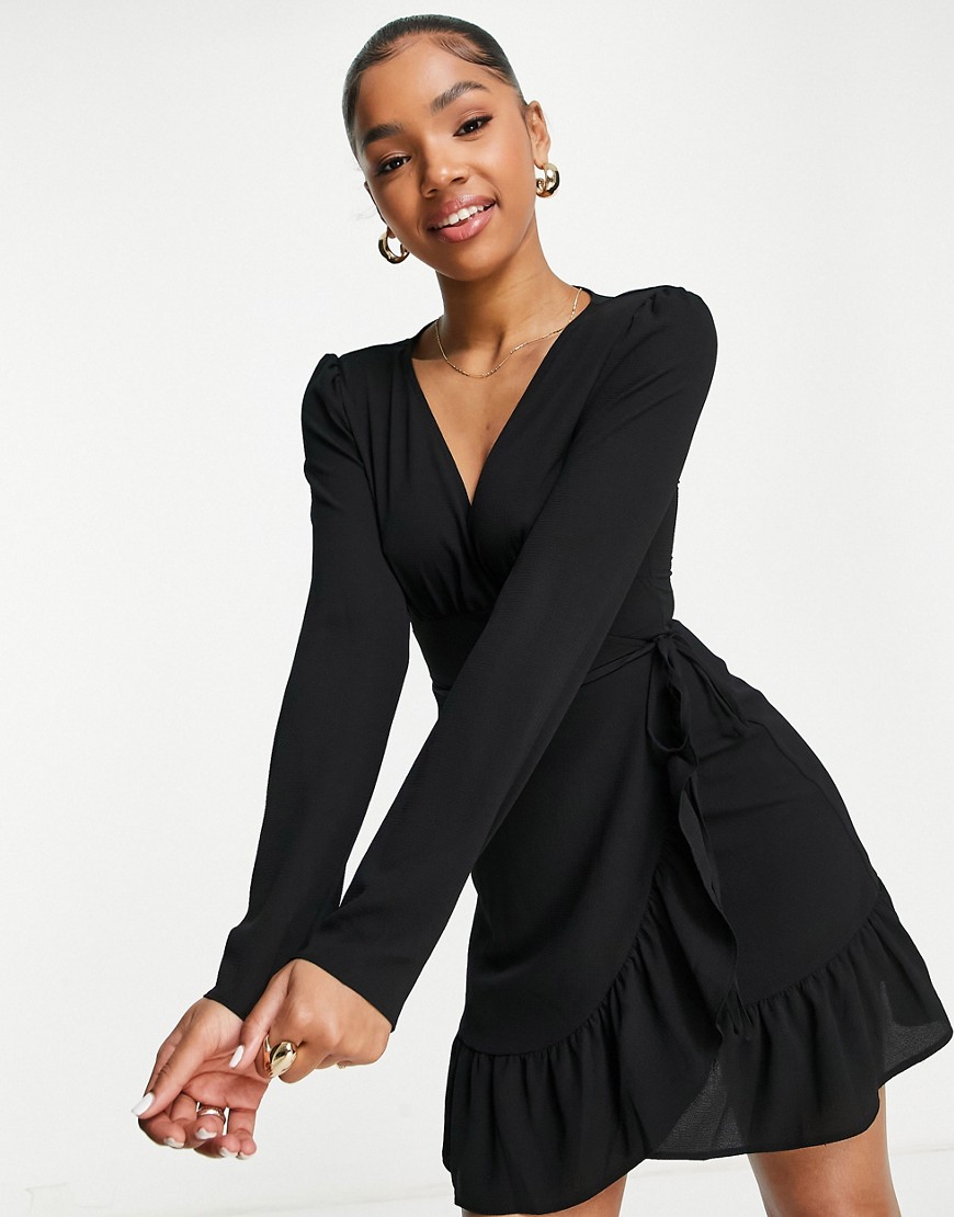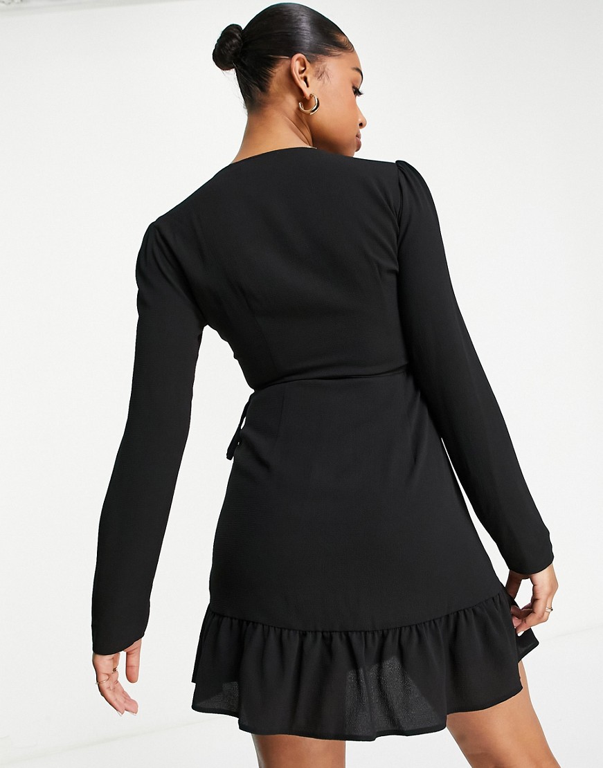Czarna sukienka mini z kopertowym przodem 36