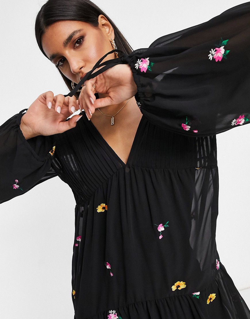 - Haftowany kwiatowy wzór na całej długości