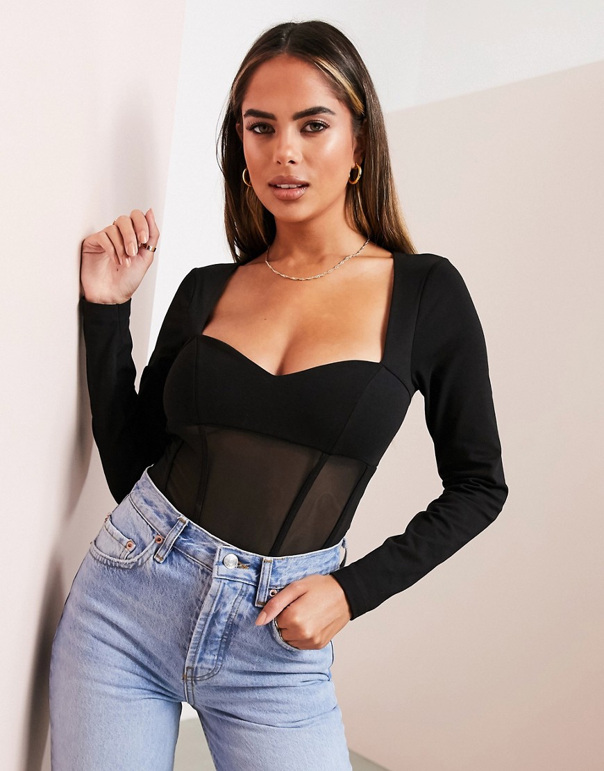 Czarne body w gorsetowym stylu z dekoltem w kształcie serca 36