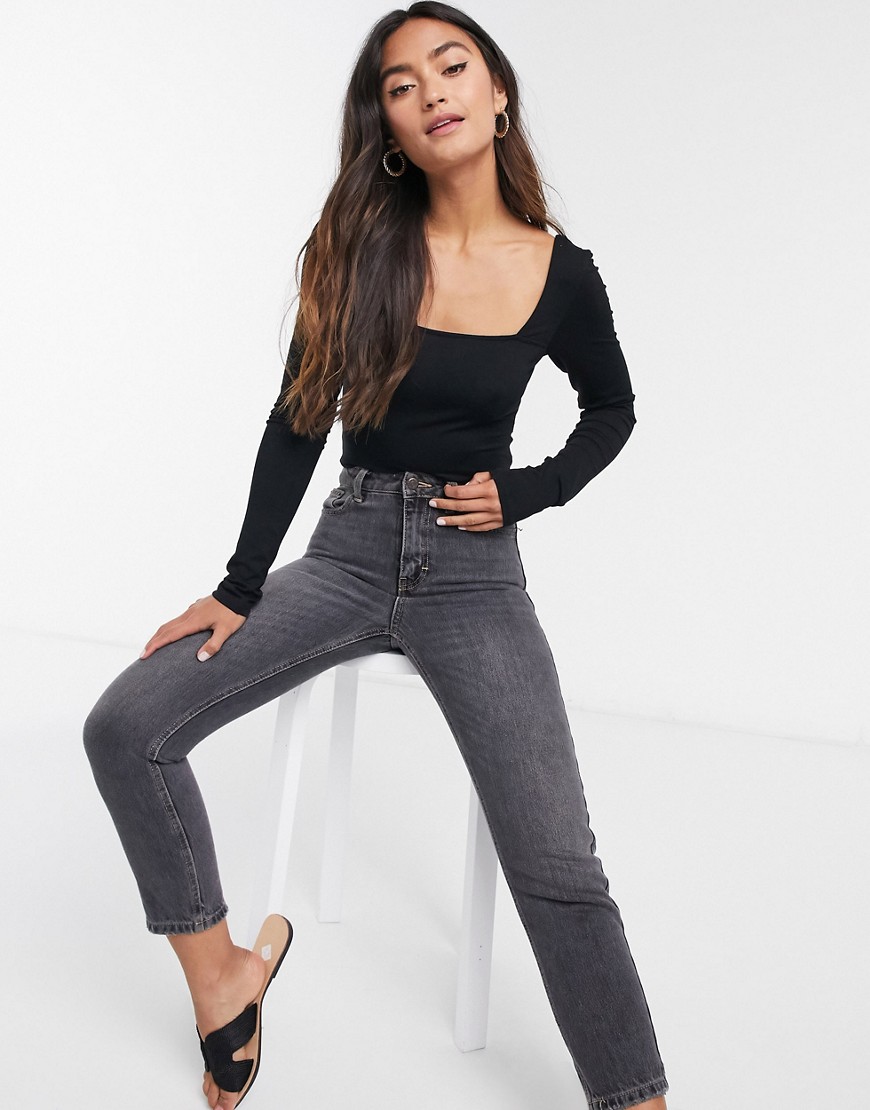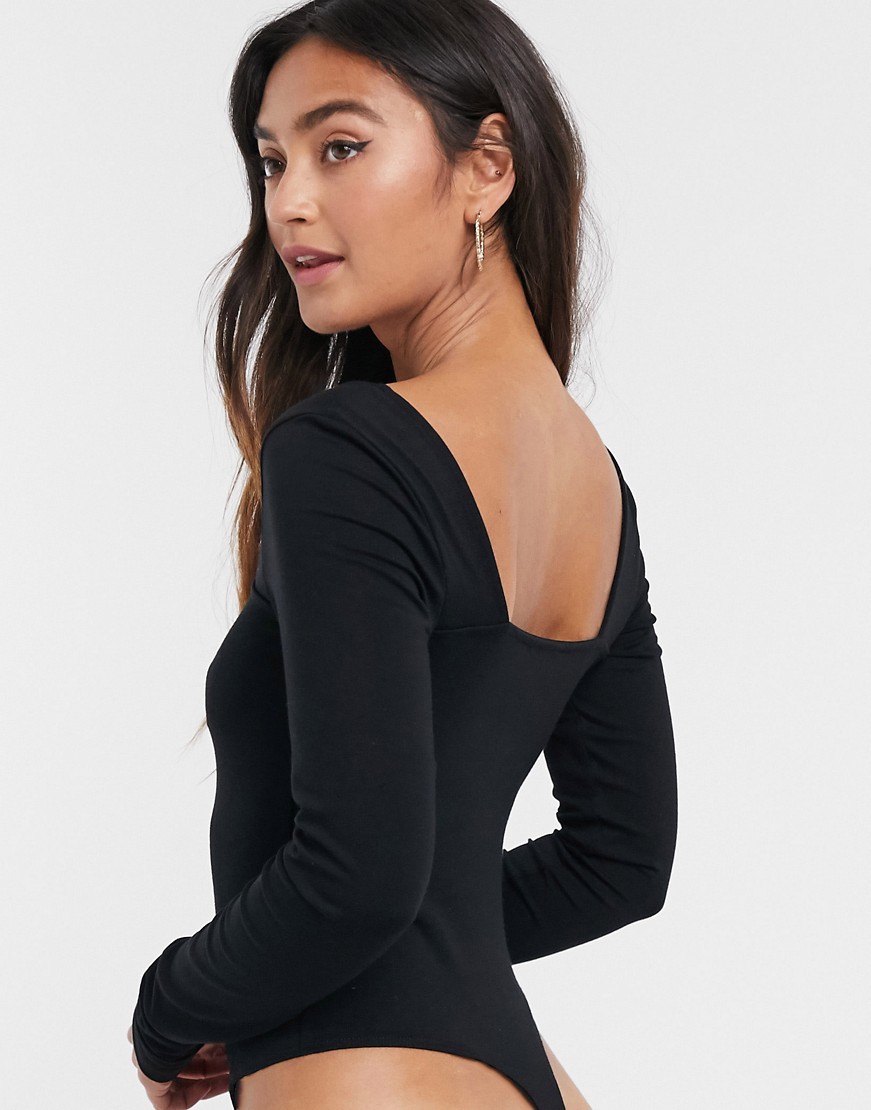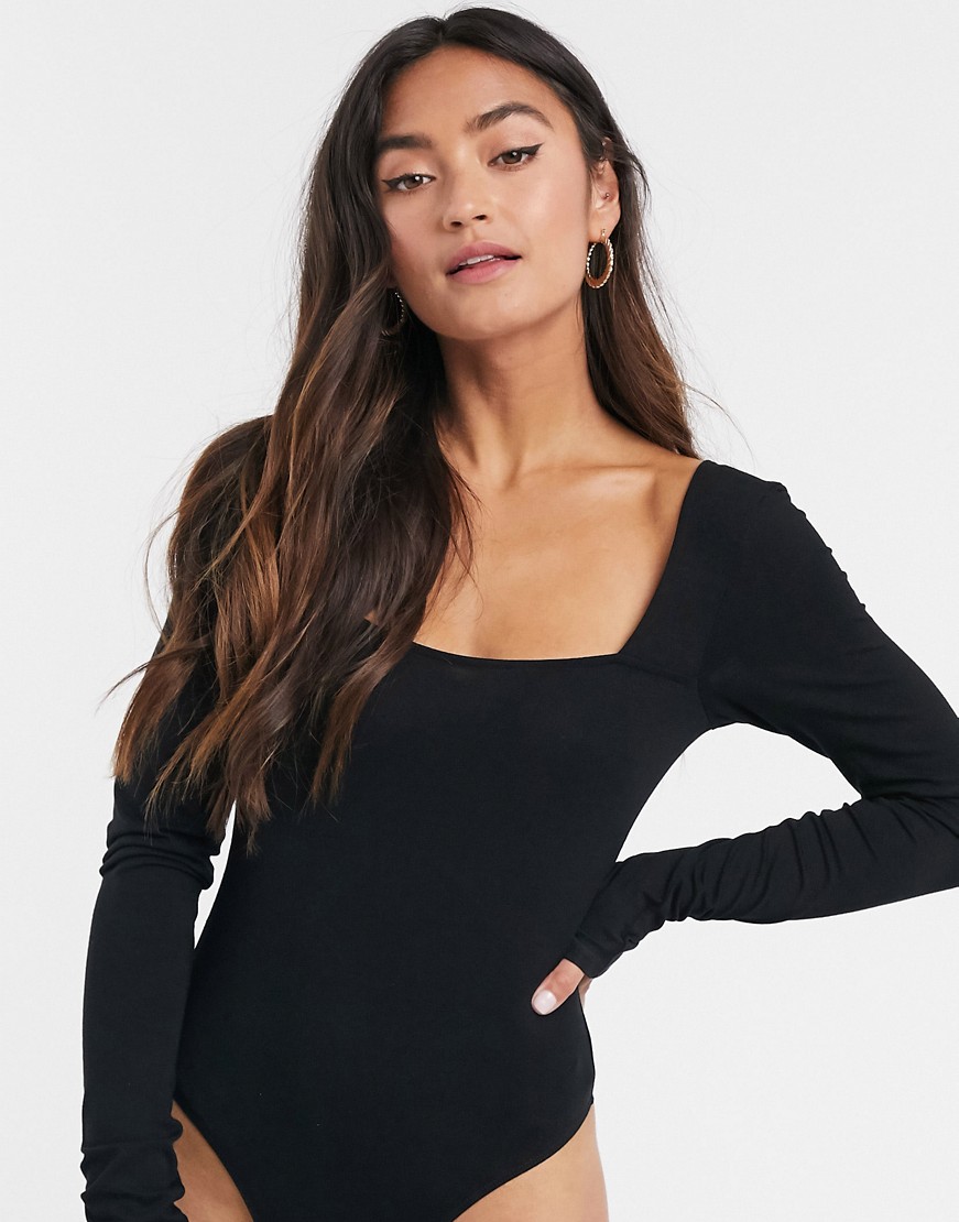 Czarne body z długim rękawem kwadratowy dekolt 36