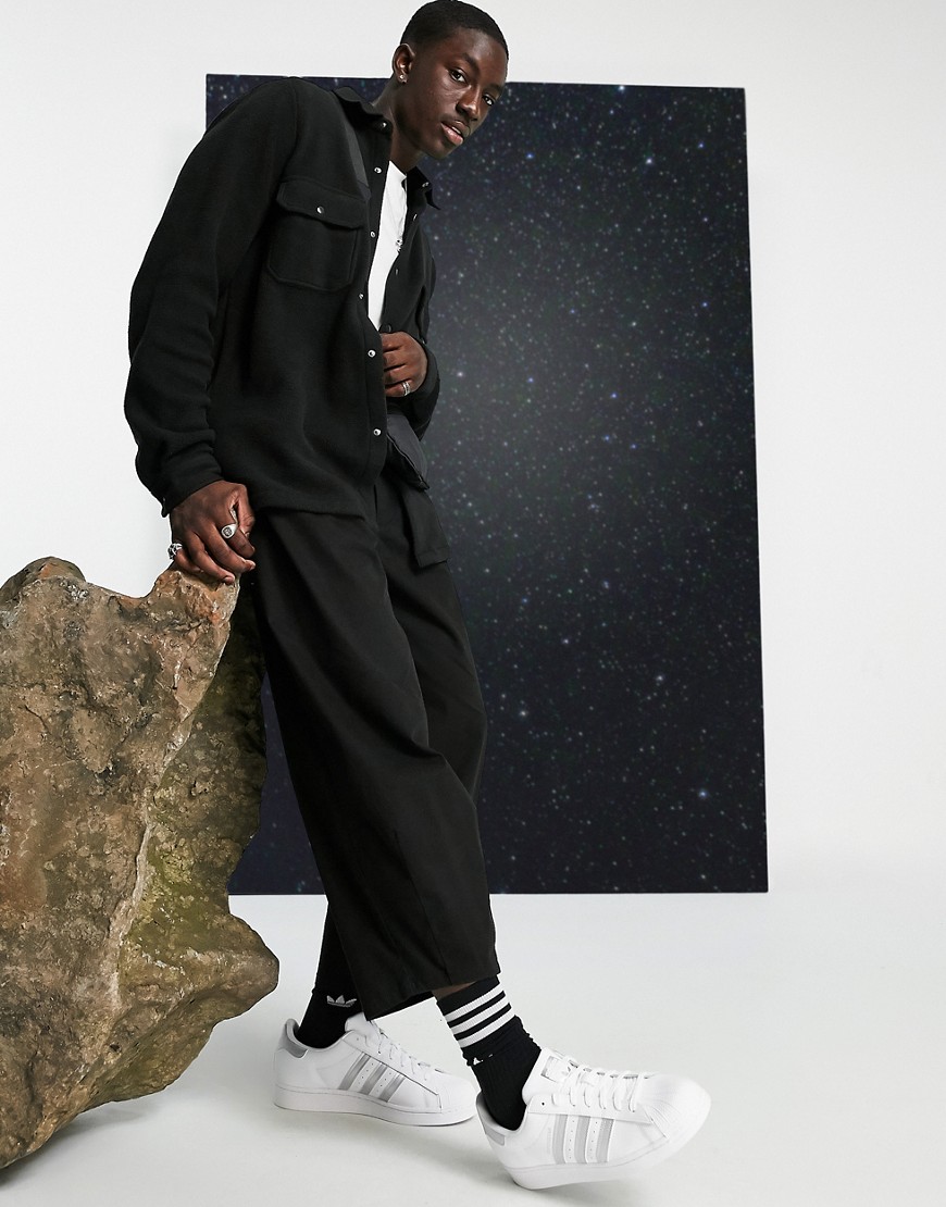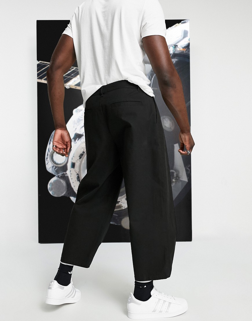 Czarne chinosy męskie o krótkim fasonie i szerokim kroju W30 L30