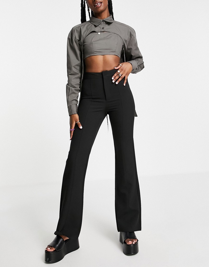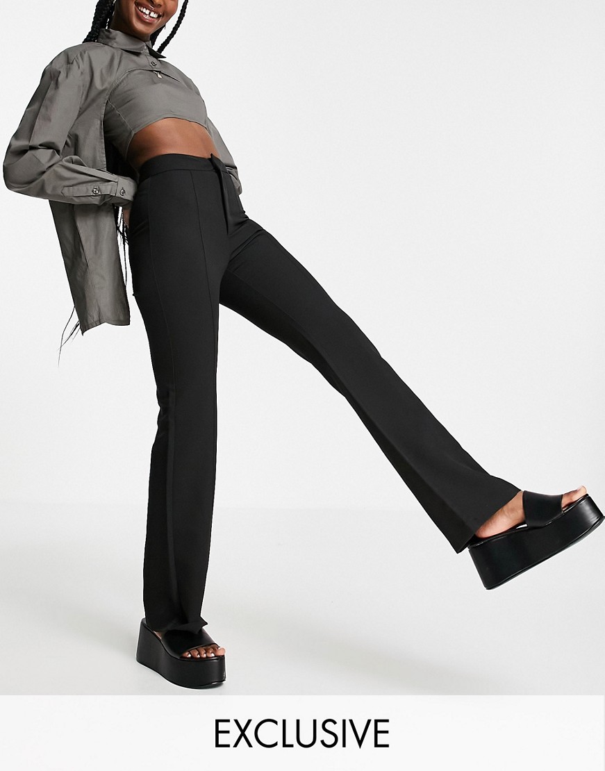Czarne damskie dopasowane dzwony podwyższonym stanem flare 44