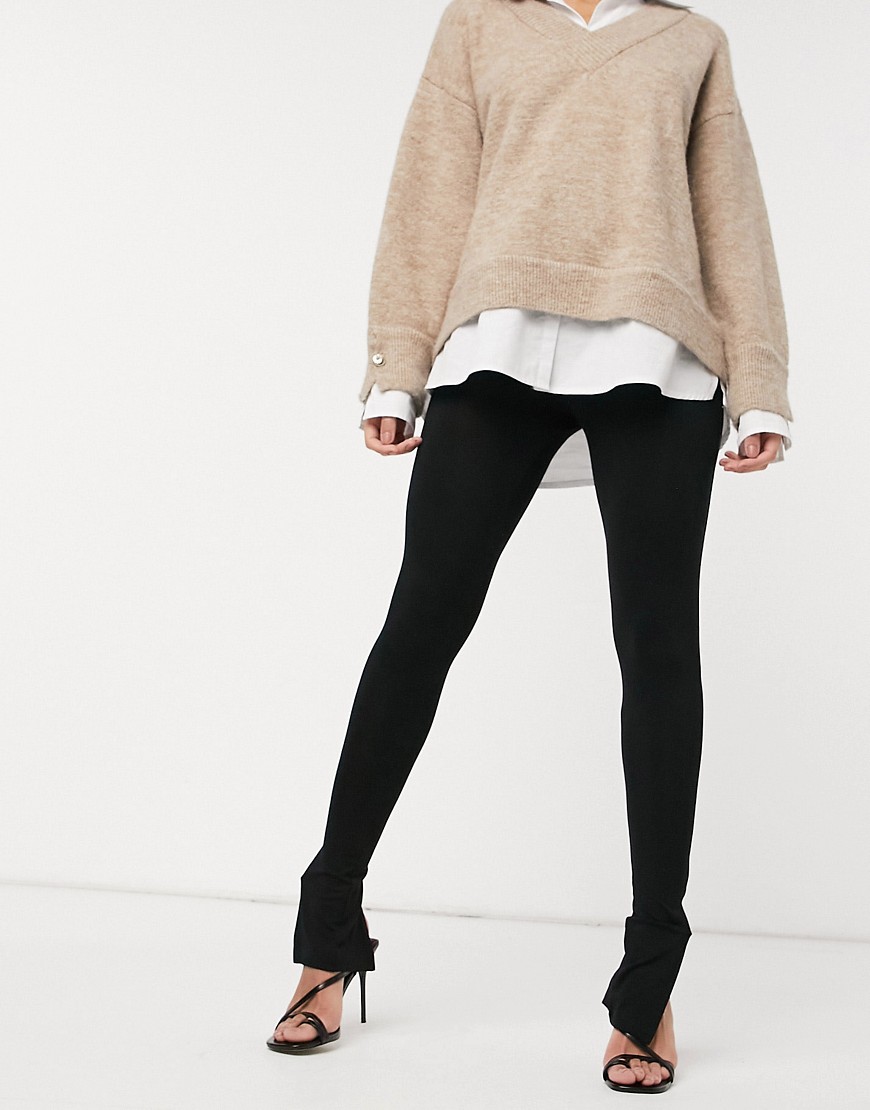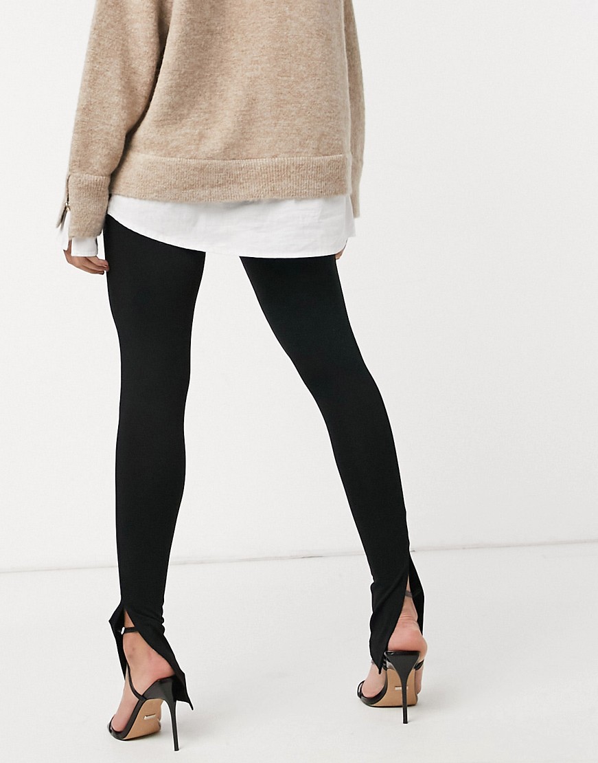 Czarne damskie legginsy z rozcięciami u dołu nogawek defekt 34