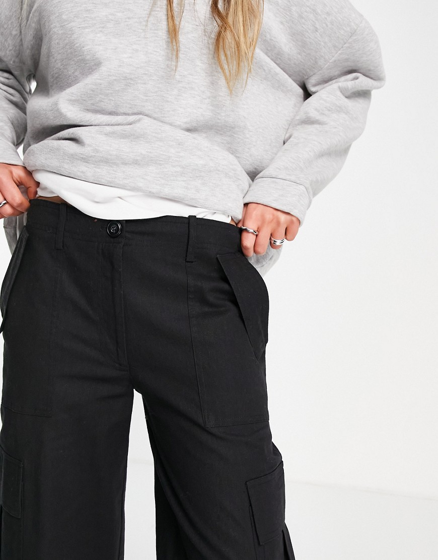 Czarne damskie spodnie lniane z kieszeniami 40