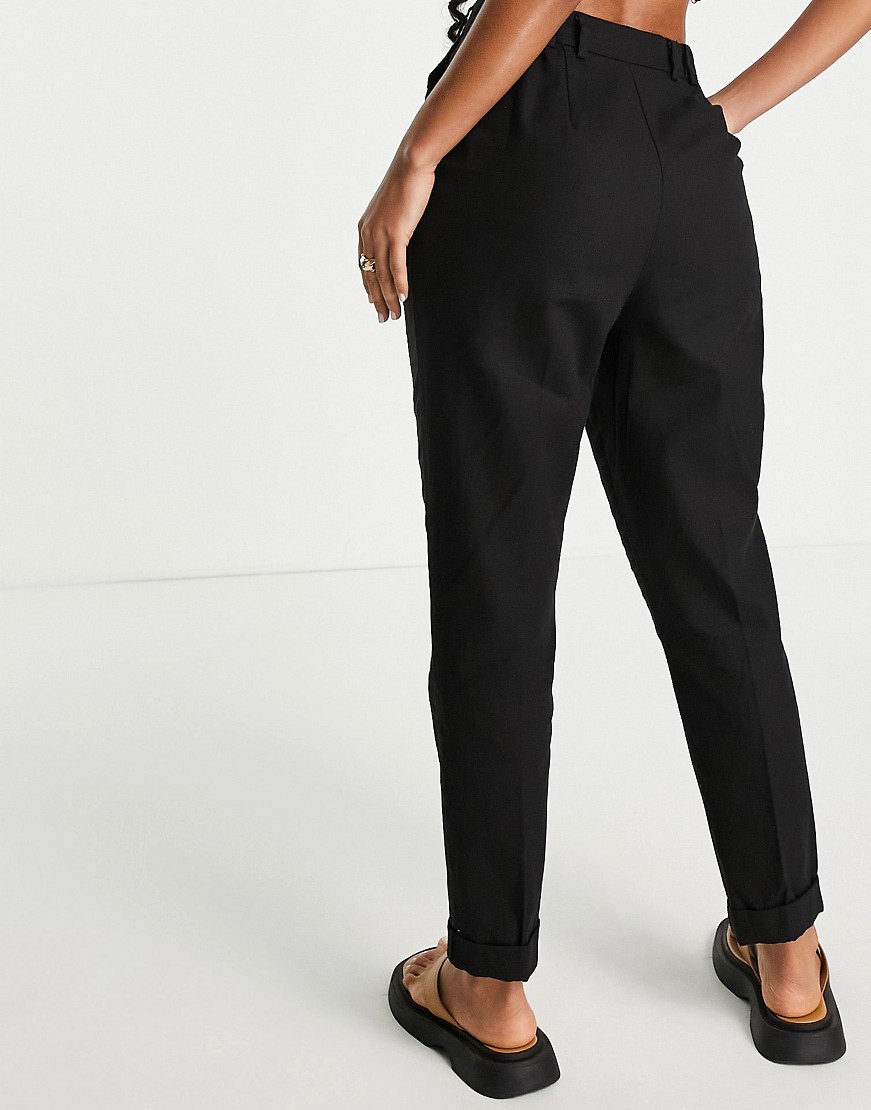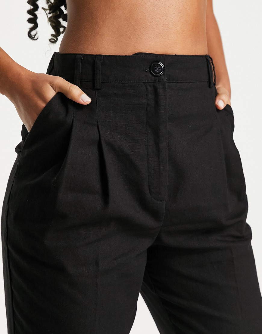 Czarne damskie spodnie z podwyższonym stanem z domieszką lnu 40