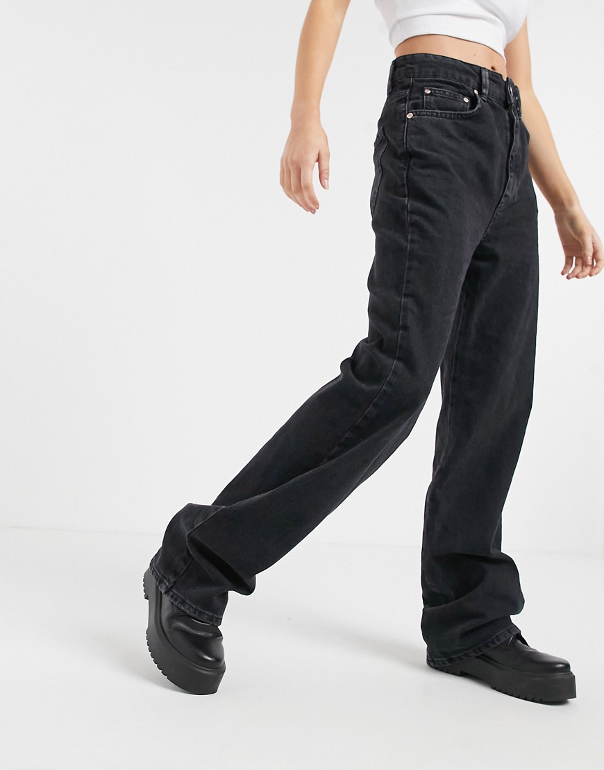 Czarne jeansy damskie dad w stylu lat 90. stright leg defekt 36