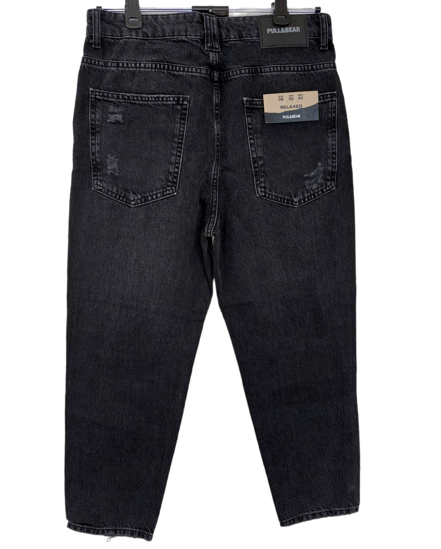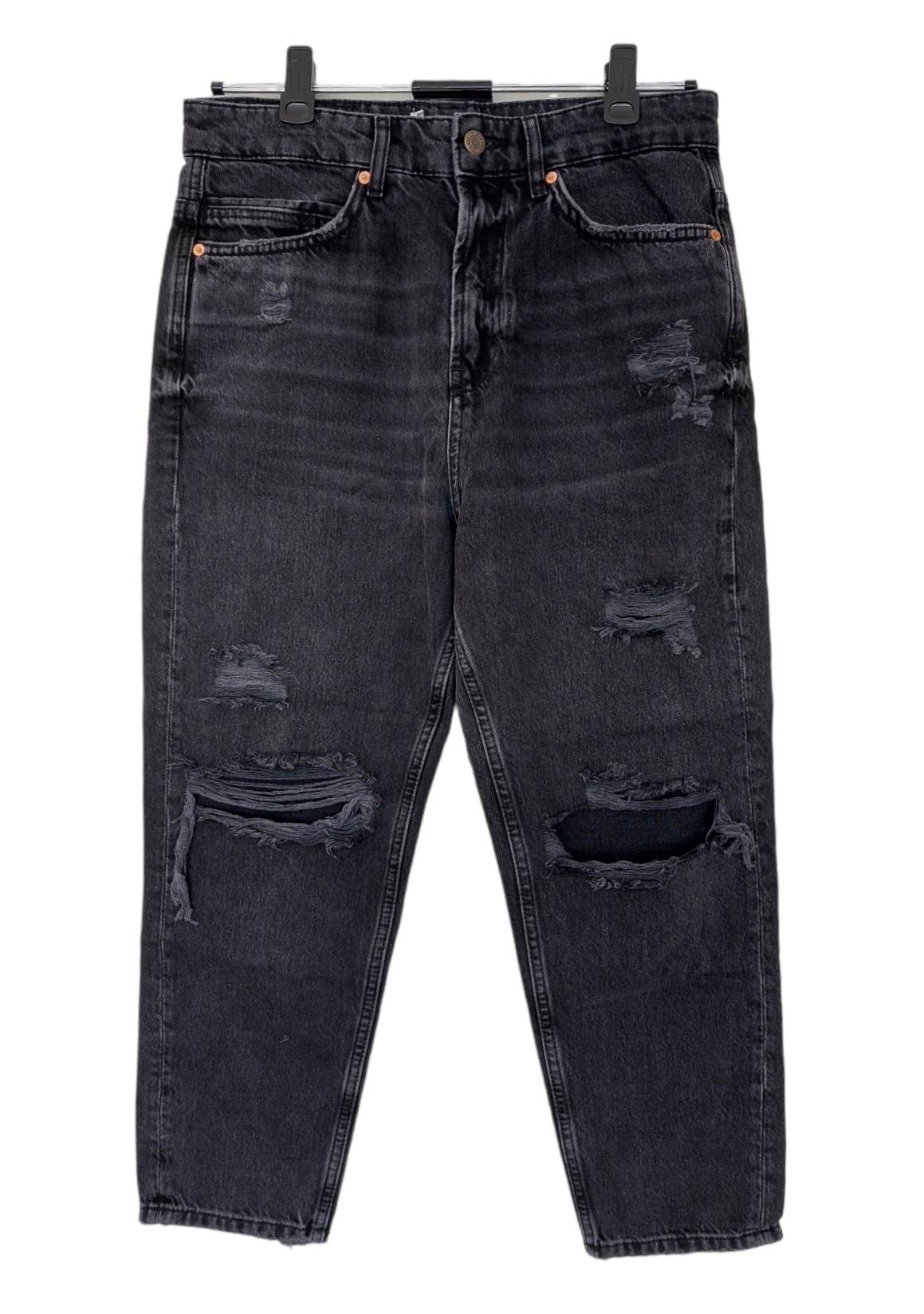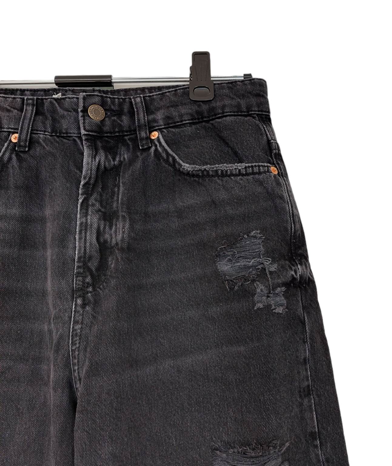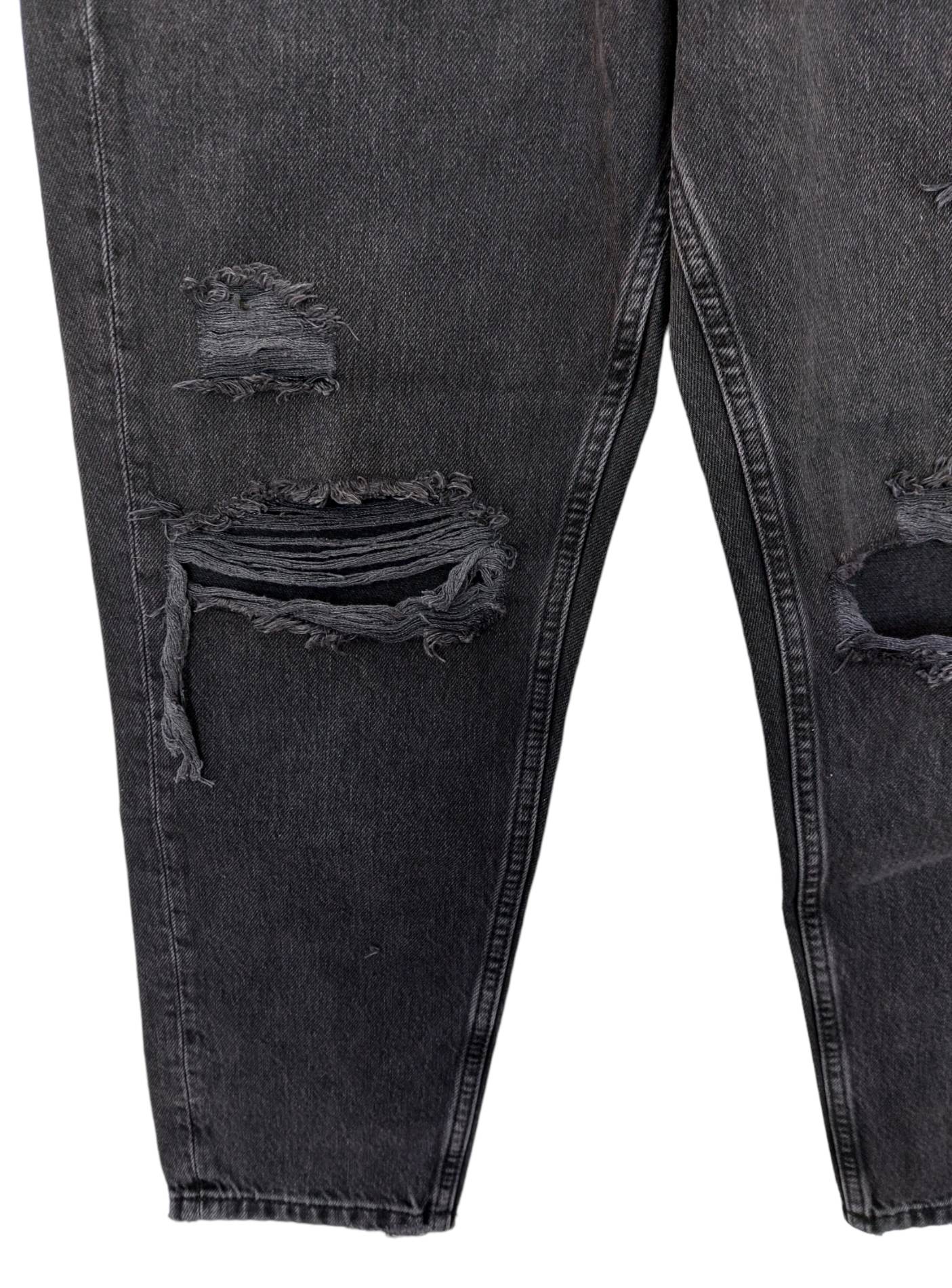 Czarne jeansy o luźnym kroju z rozdarciami 38
