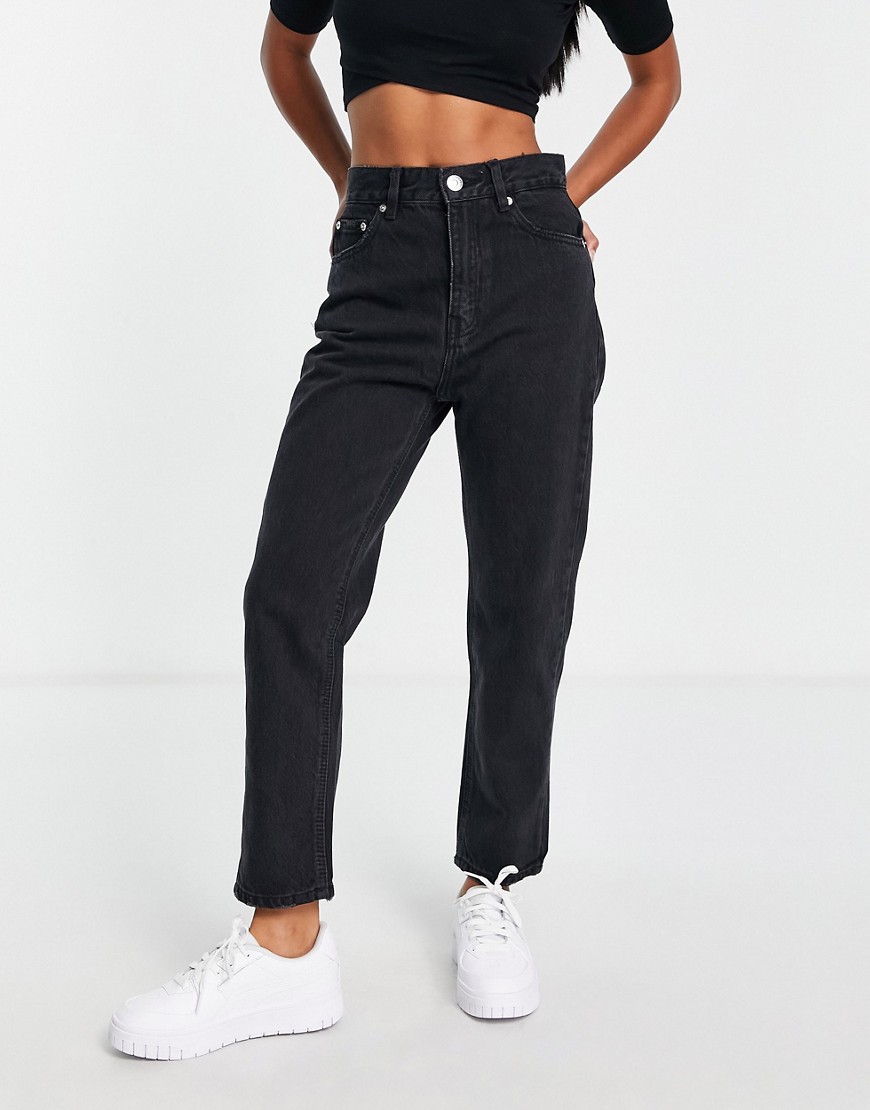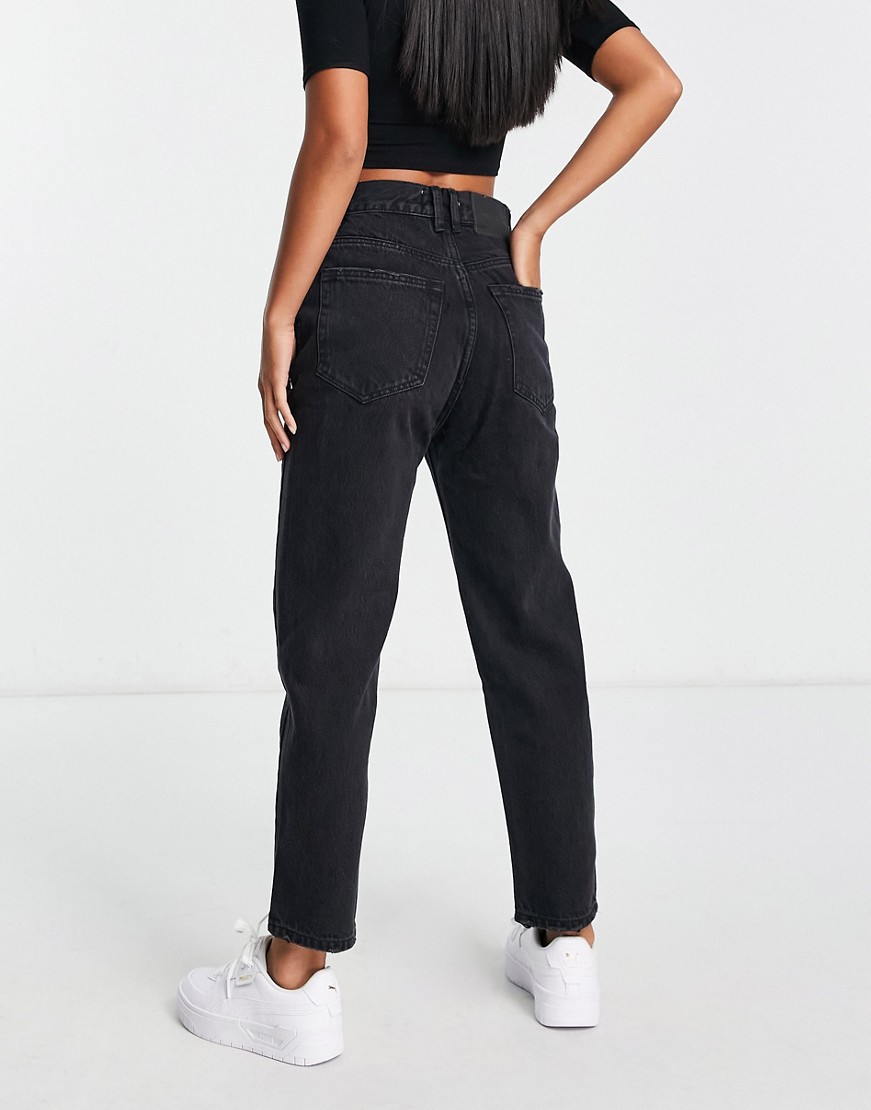 Czarne jeansy typu mom z podwyższonym stanem 36