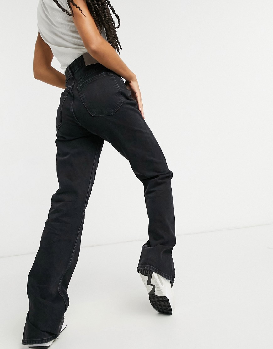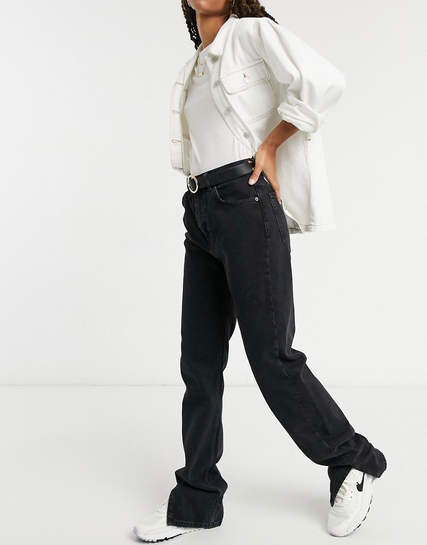 Czarne jeansy z prostymi nogawkami i rozcięciami w stylu lat 90. 42