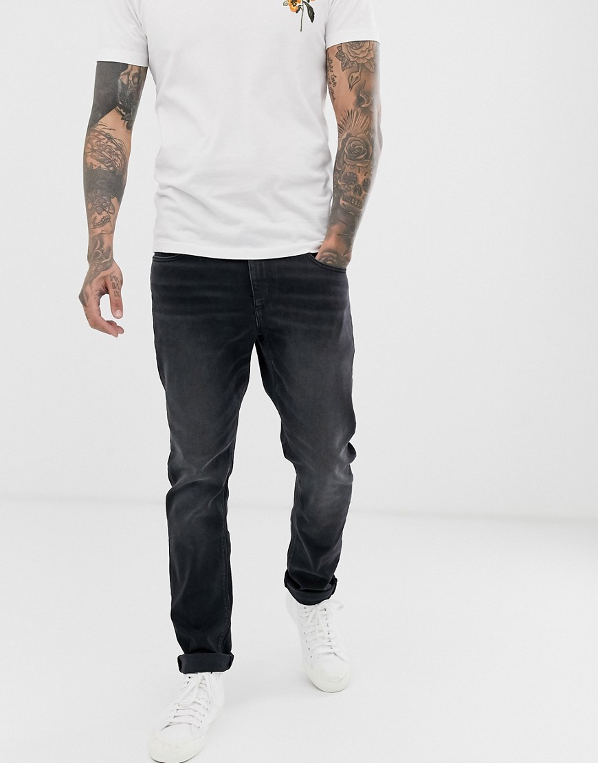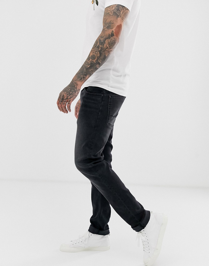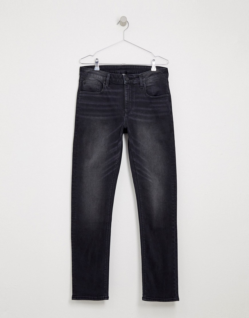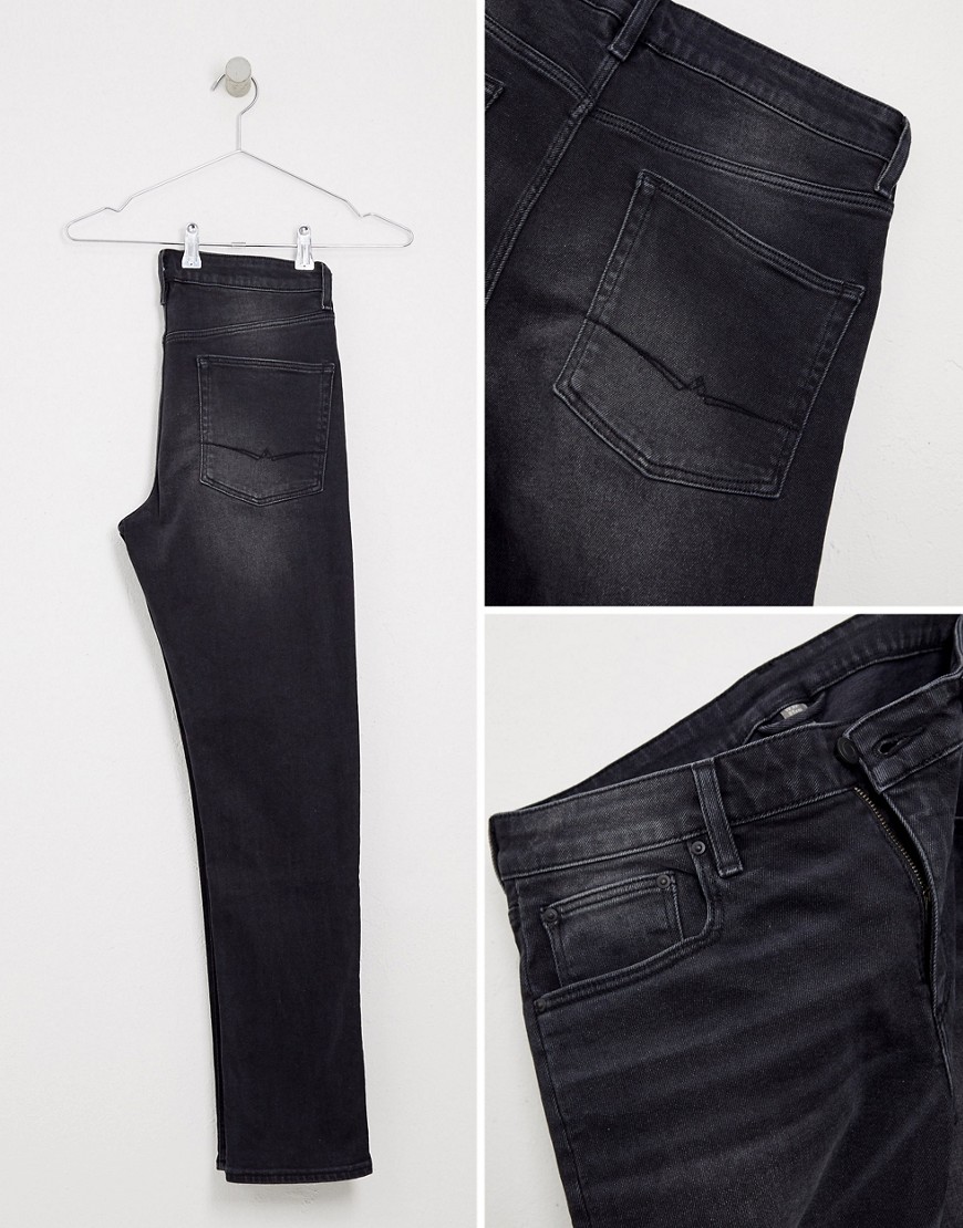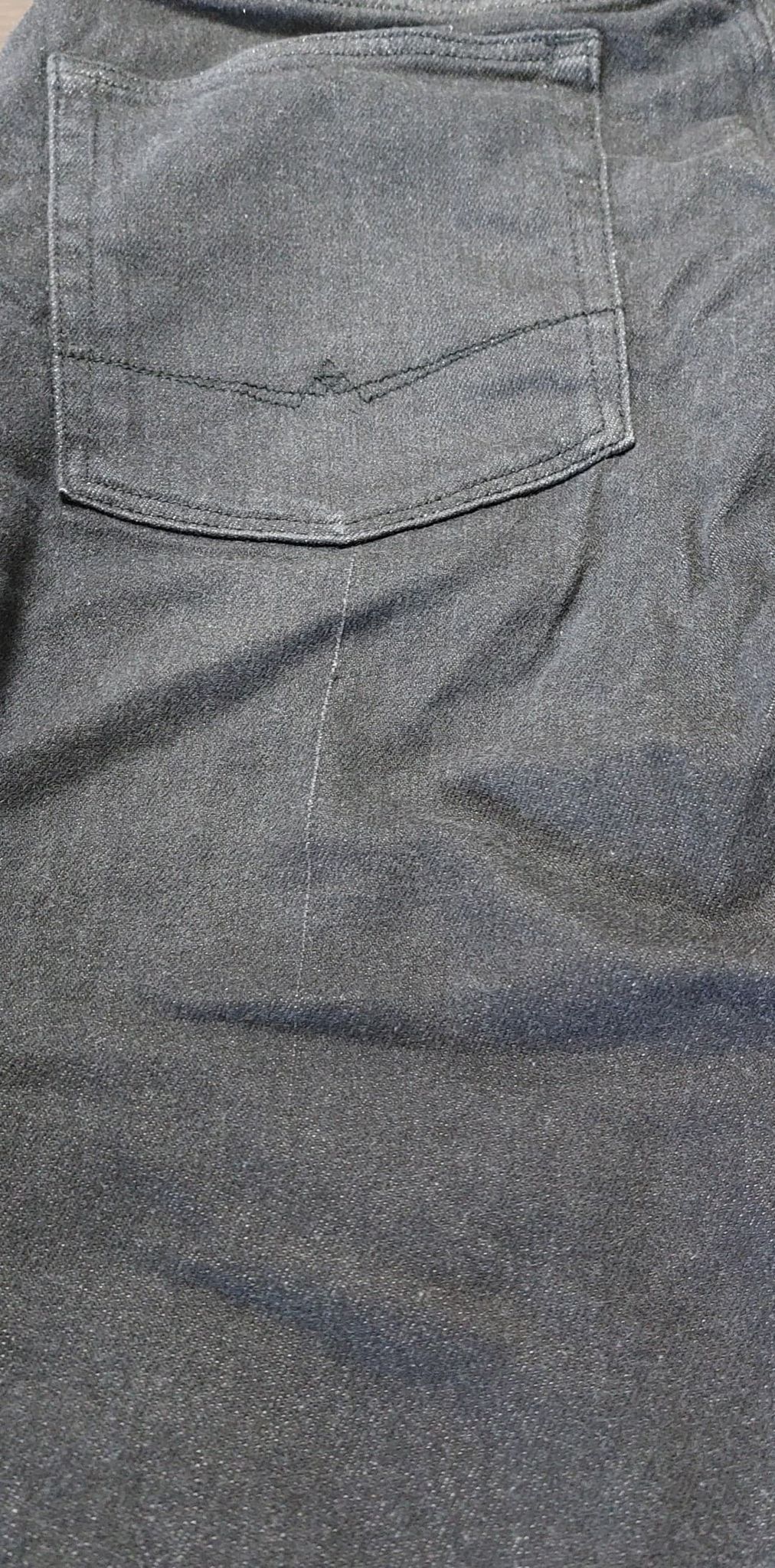 Czarne jeansy ze stretchem slim efekt sprania defekt W32 L34