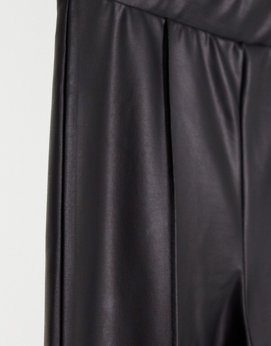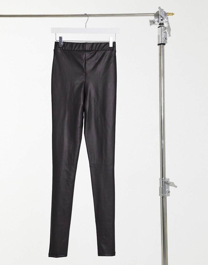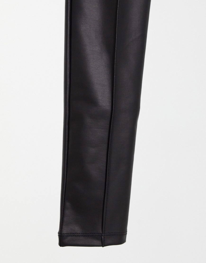 Czarne legginsy z imitacji skóry z zaszewkami 40