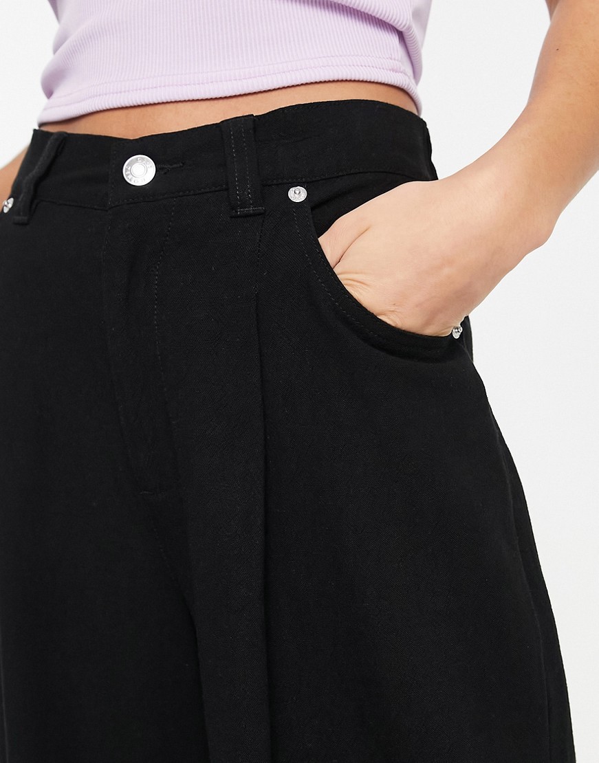 Czarne lniane spodnie z szerokimi nogawkami 44