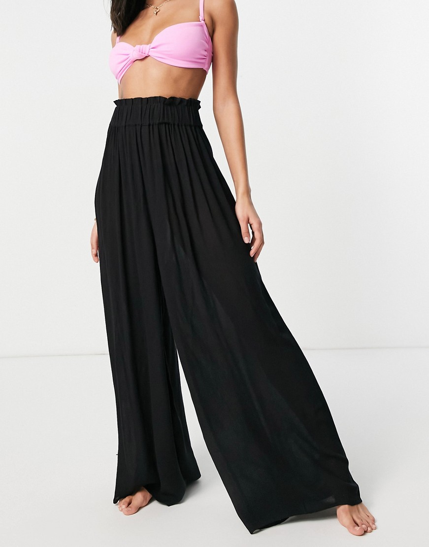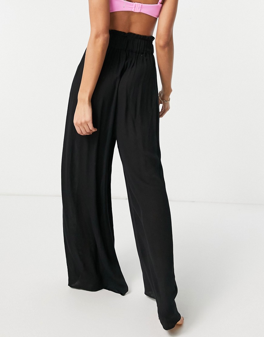 Czarne marszczone spodnie plażowe z szerokimi nogawkami 38