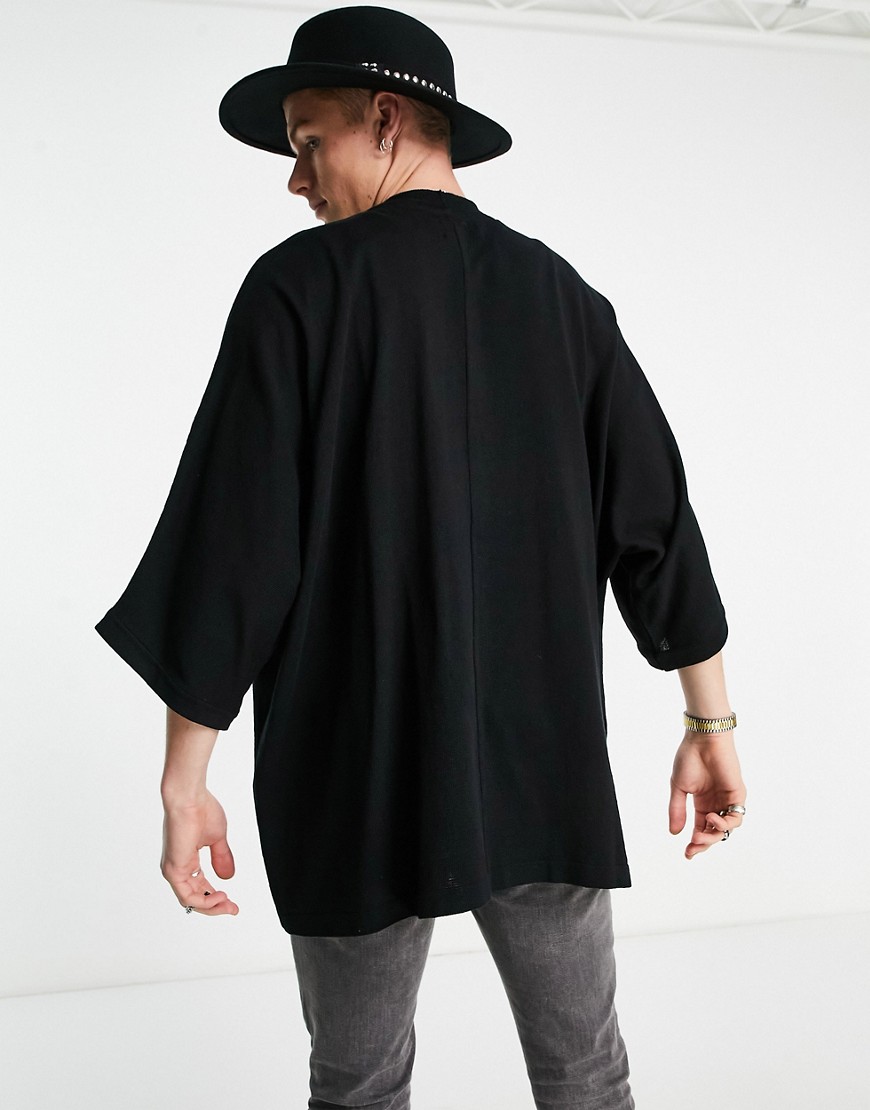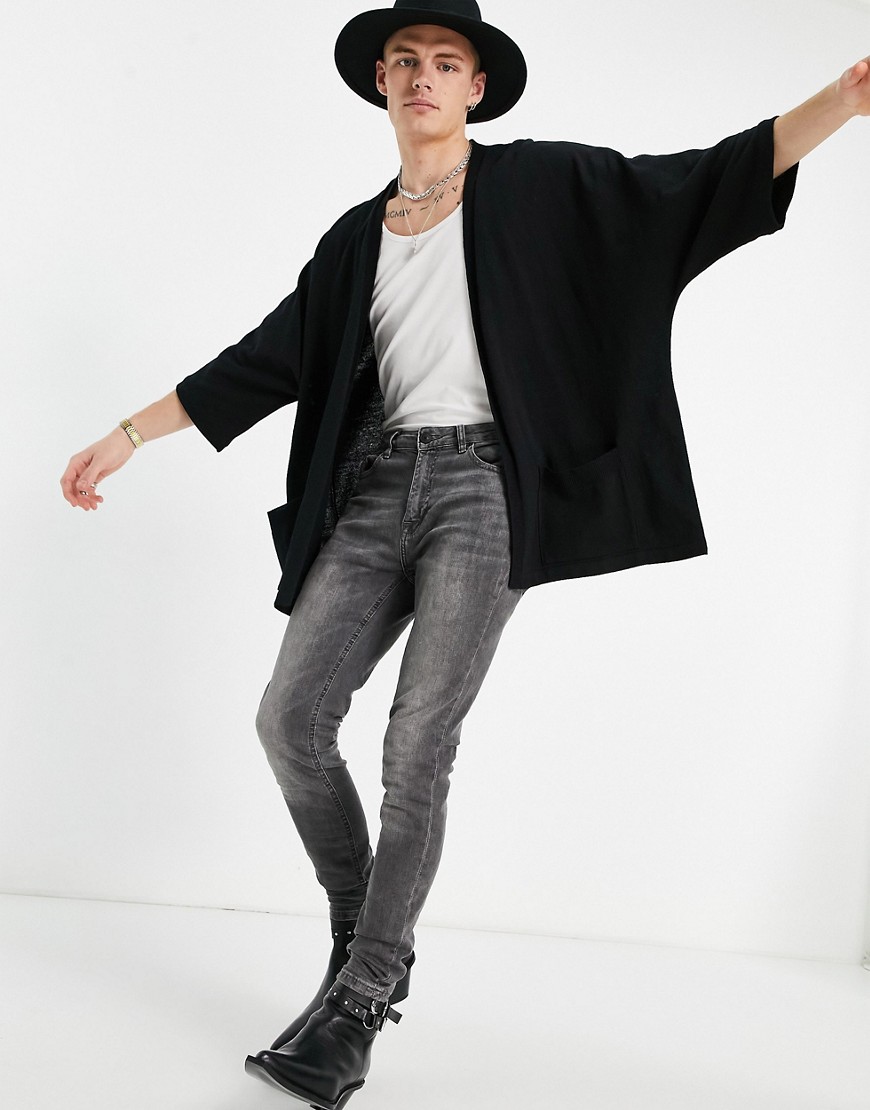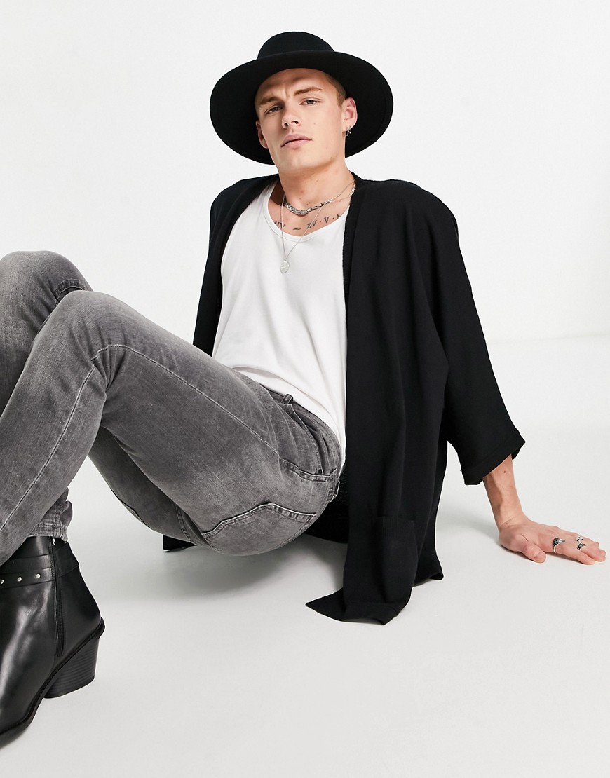 Czarne męskie dzianinowe kimono oversize XXS