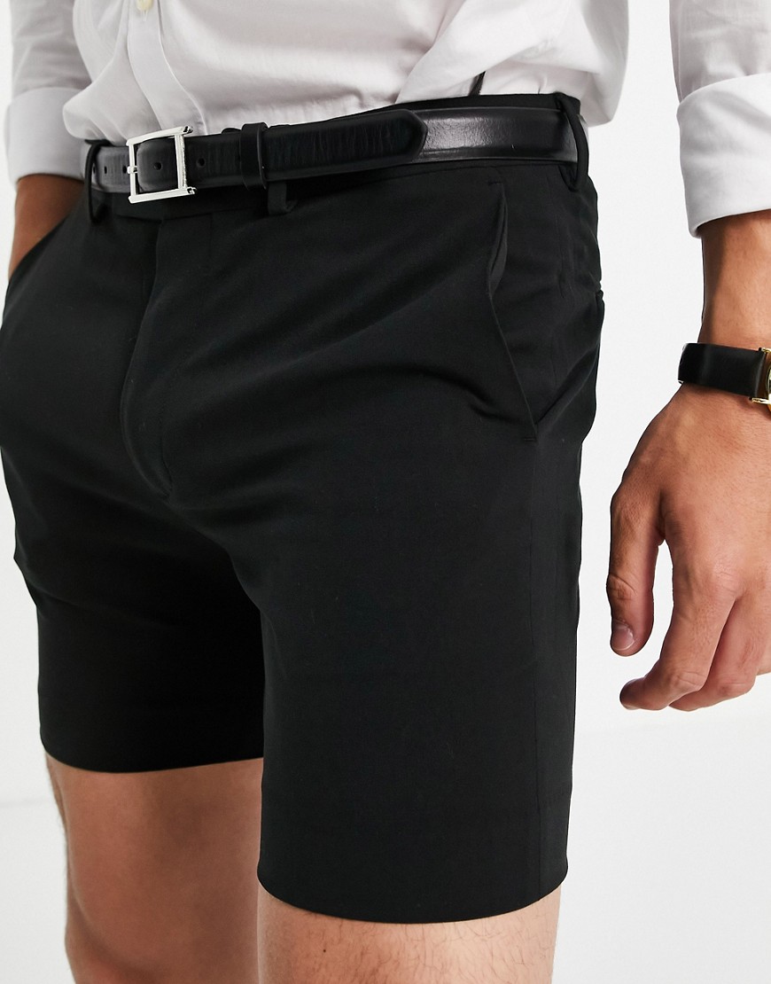 Czarne męskie krótkie spodenki skinny chinosy W30