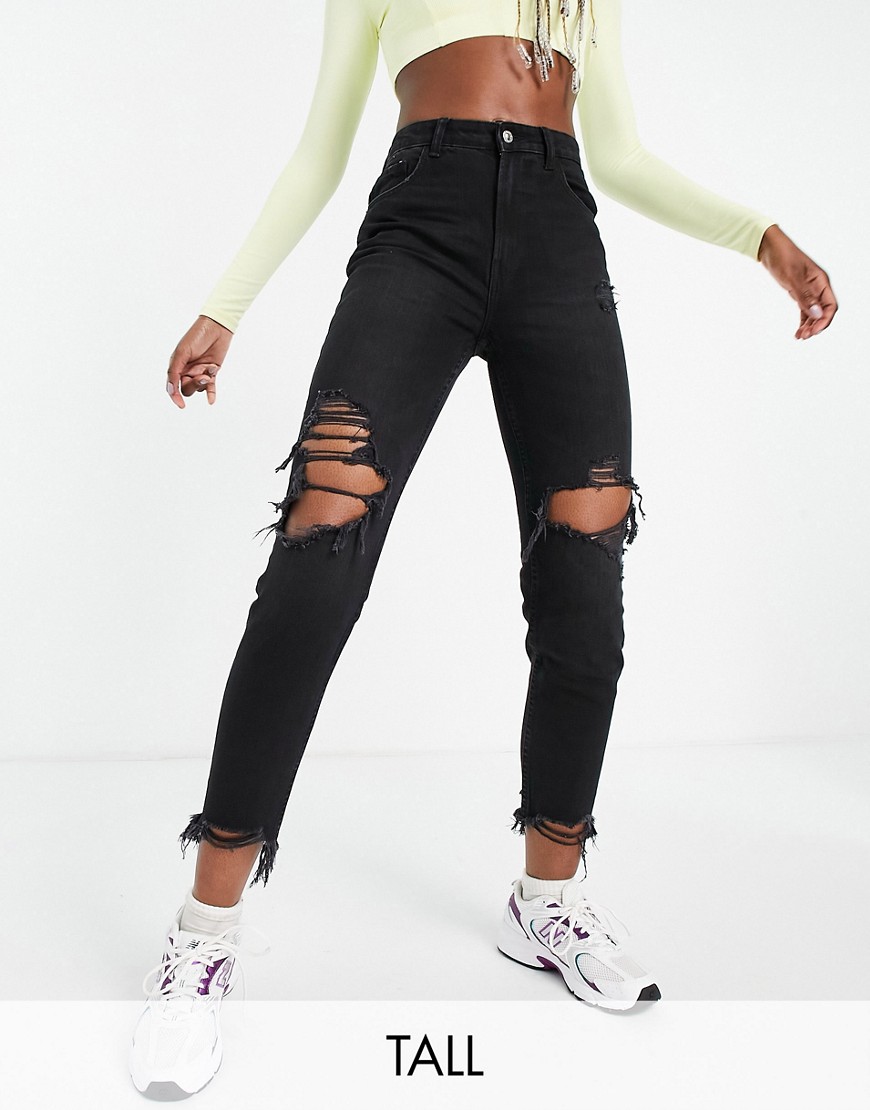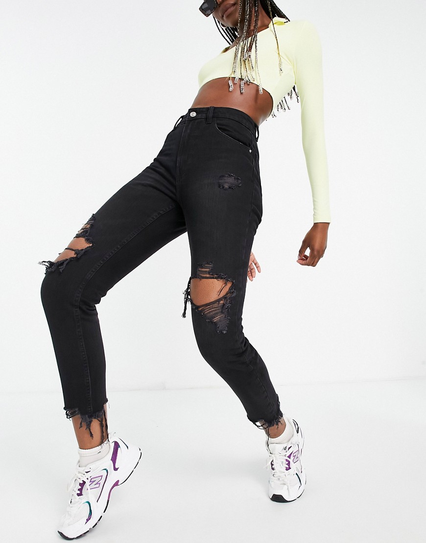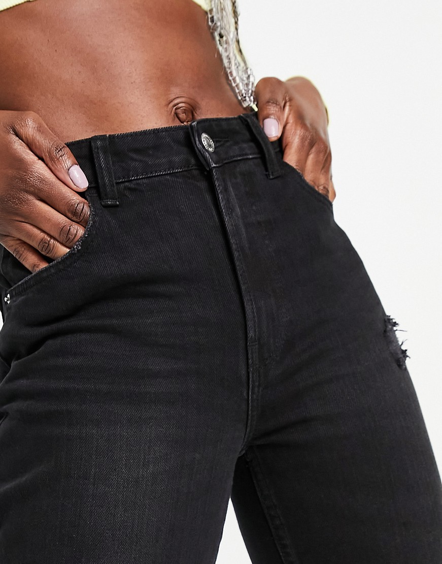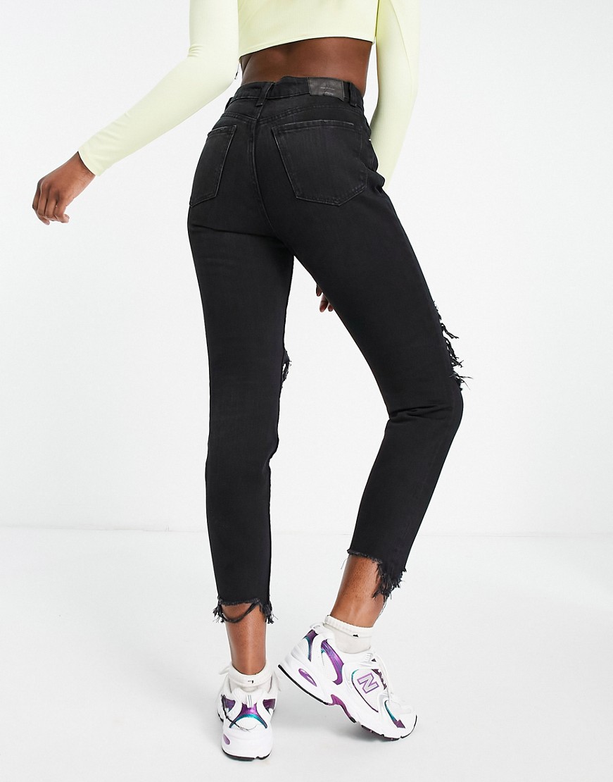 Czarne mom jeans z bawełny organicznej z przetarciami 38