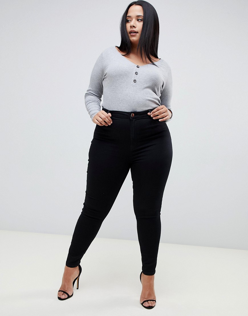 Czarne obcisłe jeansy z podwyższonym stanem 48 L32