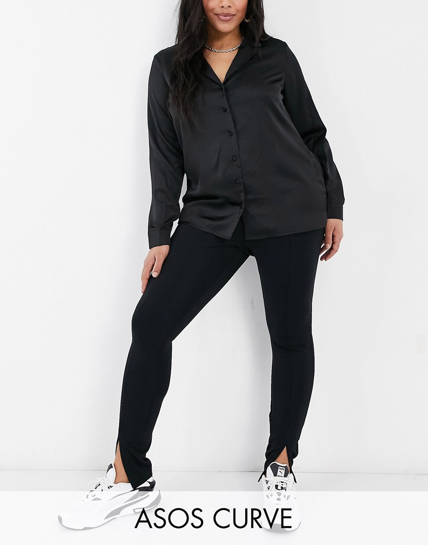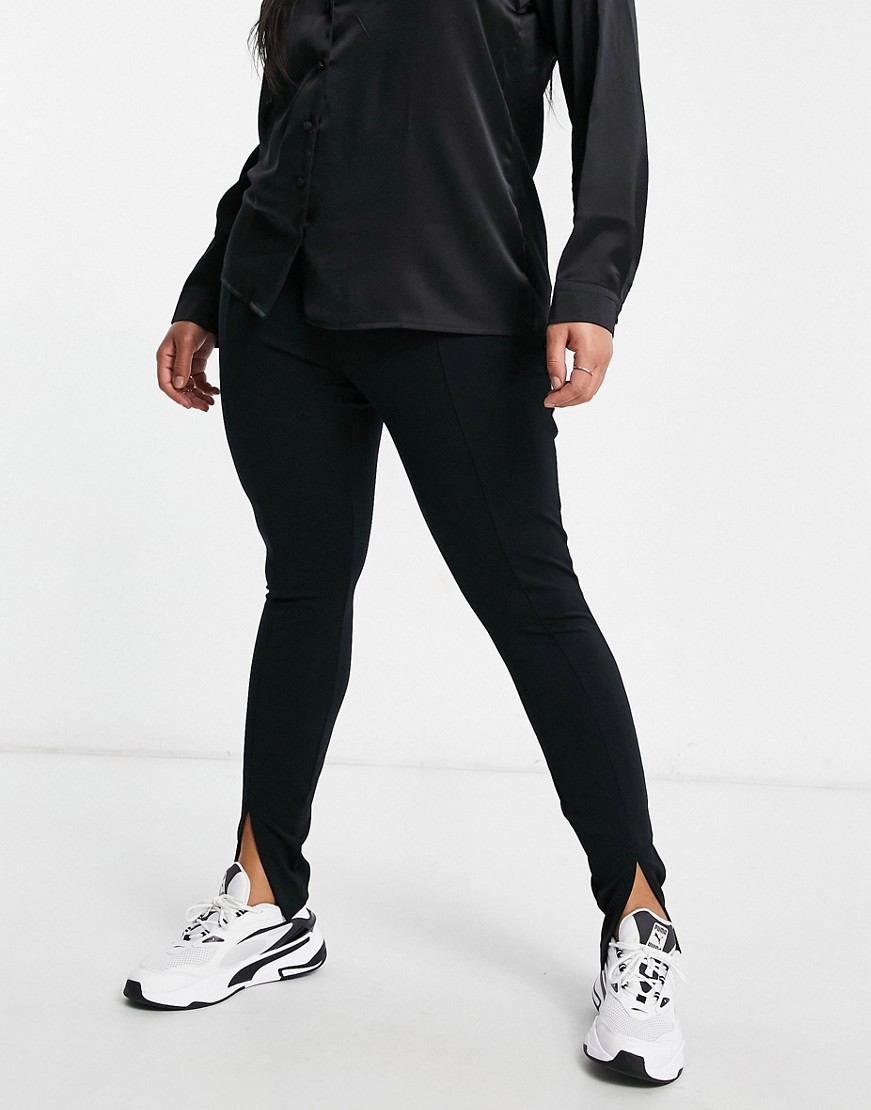 Czarne obcisłe spodnie z rozcięciami na nogawkach plus size 52