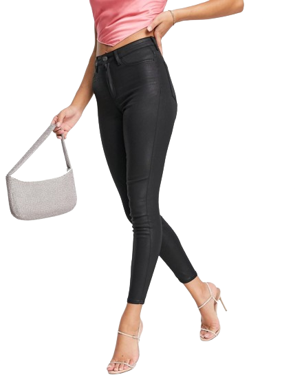 Czarne powlekane jeansy z wysokim stanem o obcisłym kroju W34 L32