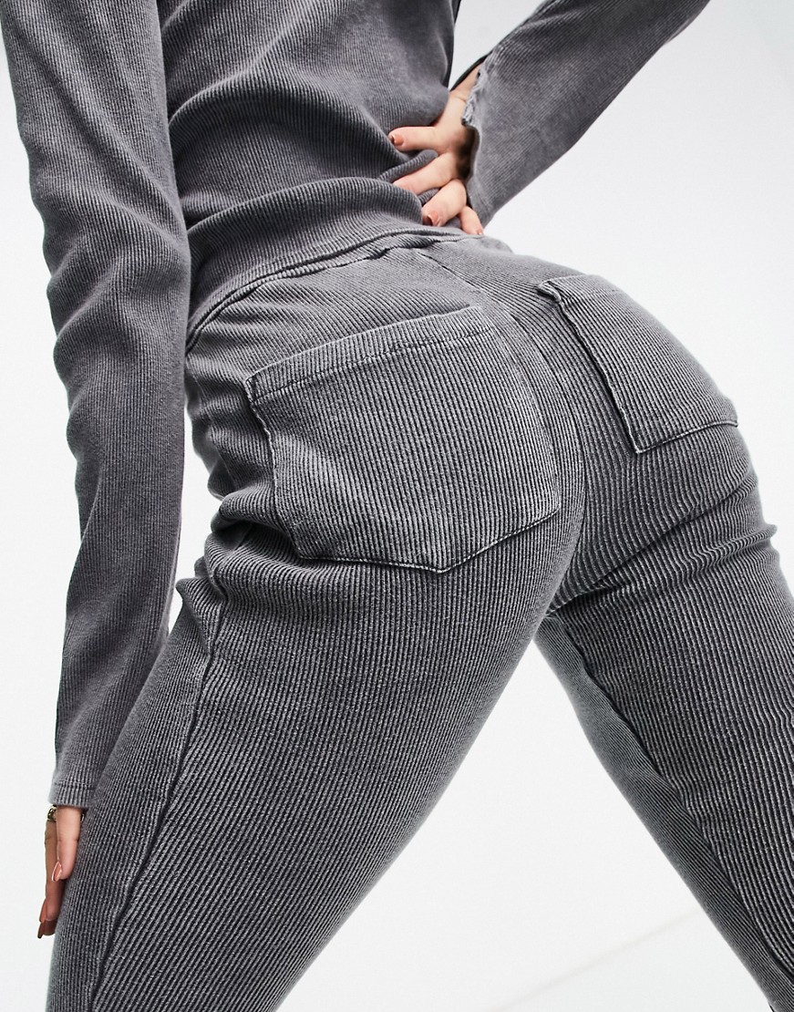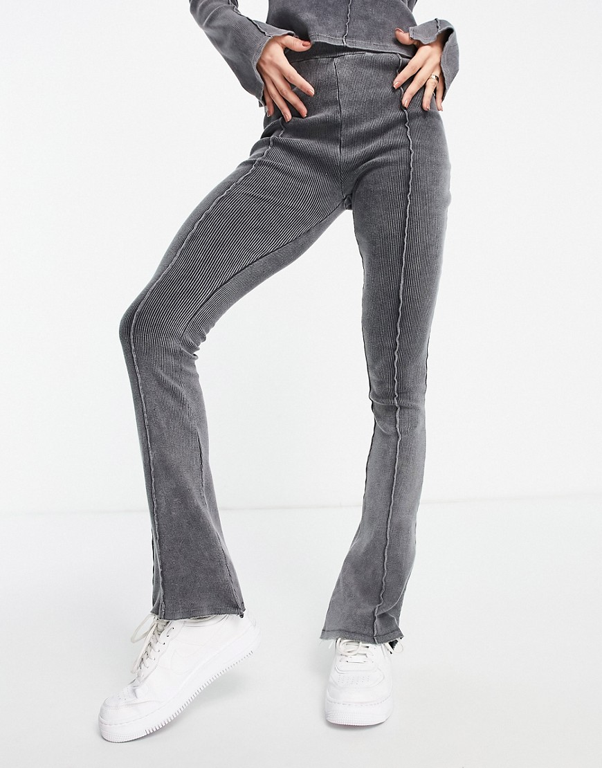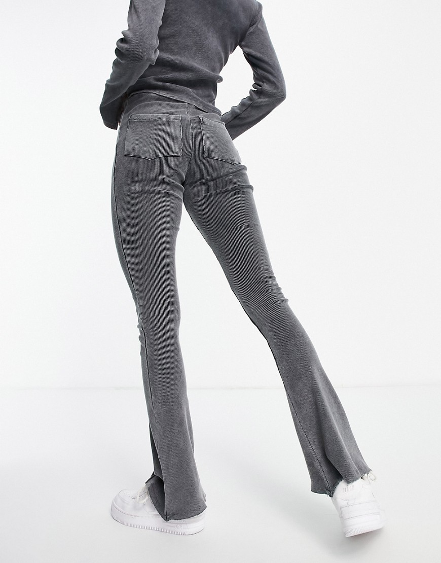Czarne prążkowane spodnie dzwony flare efekt sprania 42