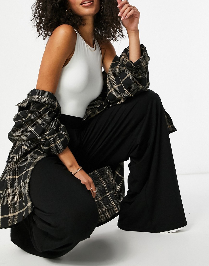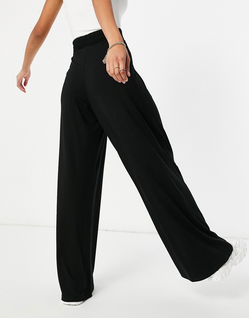 Czarne spodnie dżersejowe z szerokimi nogawkami 44