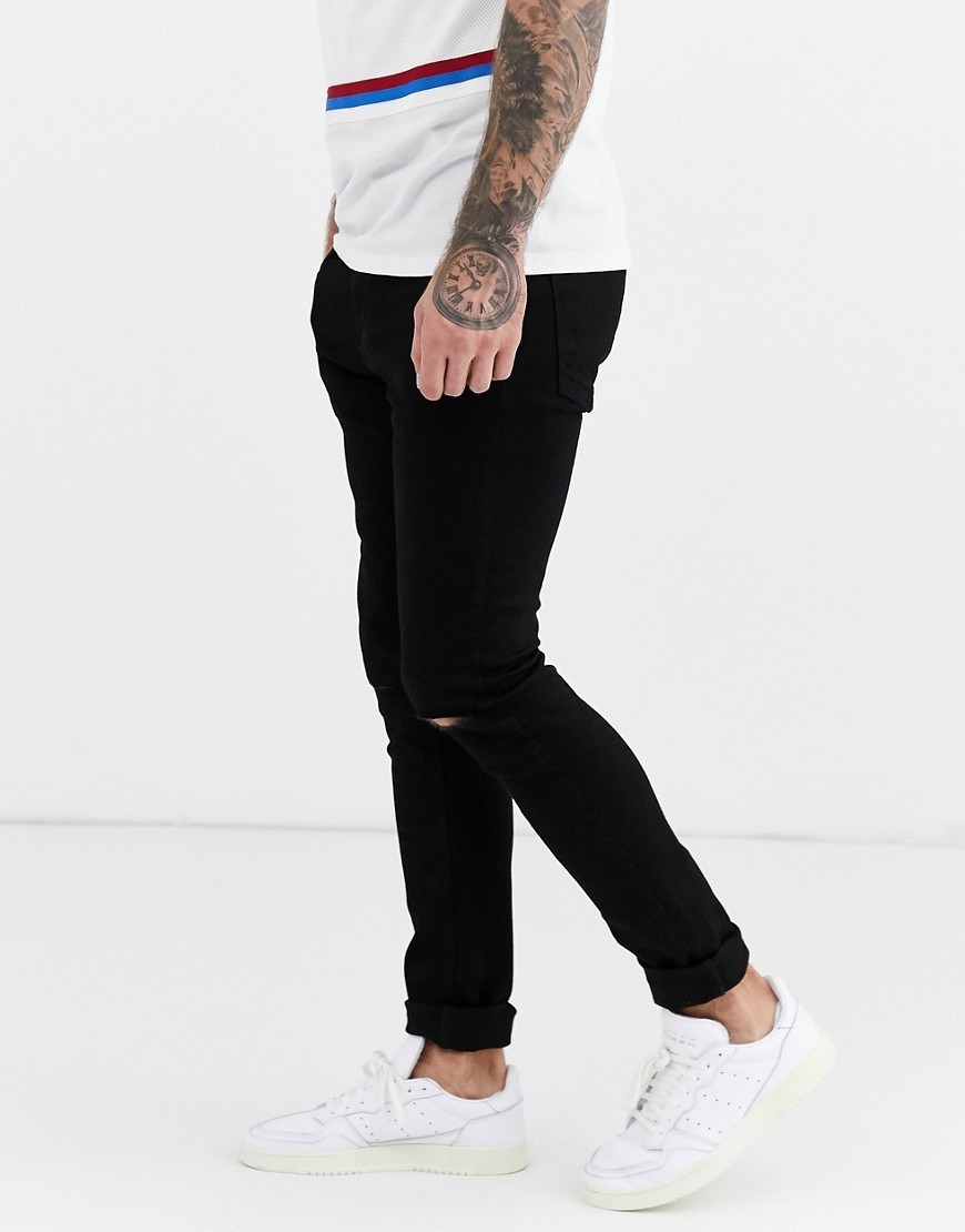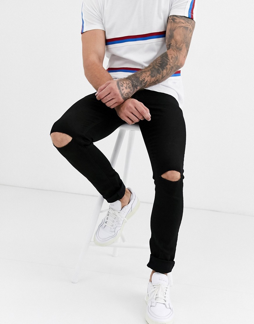 Czarne Spodnie jeansowe dopasowane rozcięcia na kolanach W32 L32