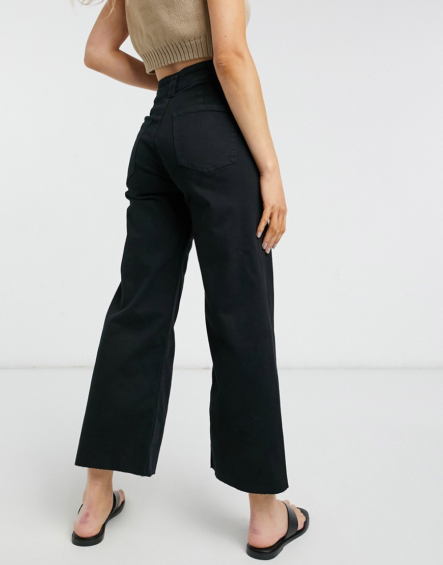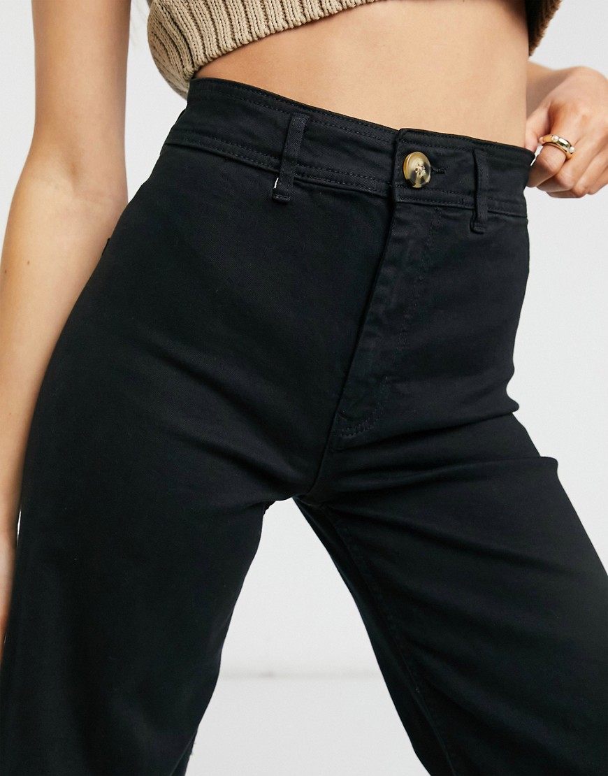 Czarne spodnie jeansy podwyższony stan wide leg dzwony 36