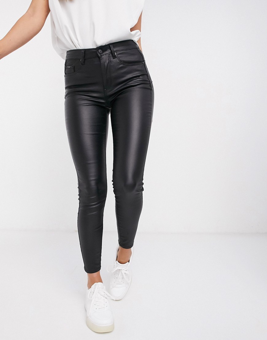 Czarne spodnie push up z błyszczącym wykończeniem defekt 42