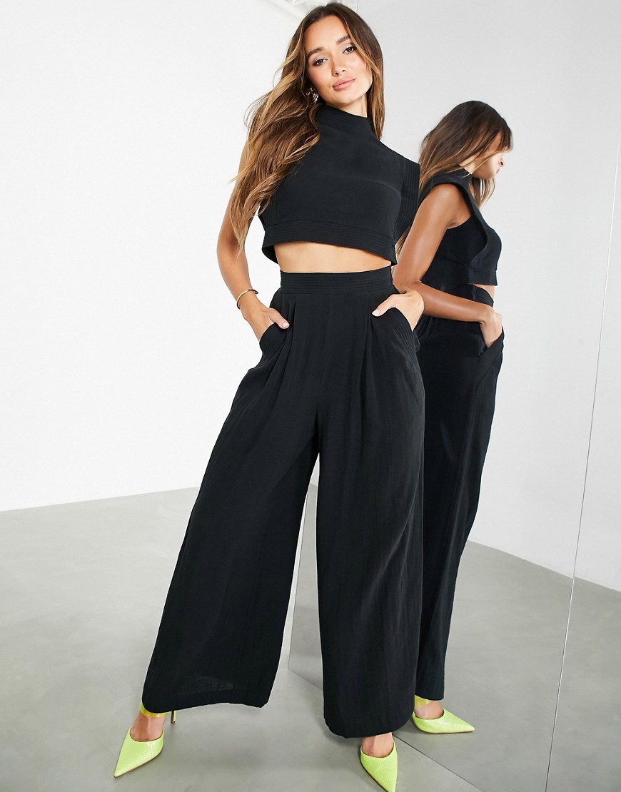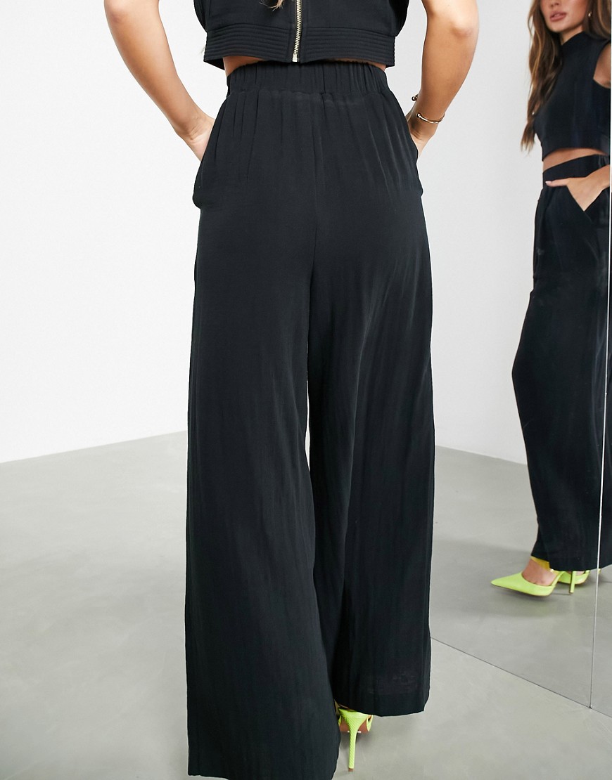 Czarne spodnie z szerokimi nogawkami i ozdobnym szwem 38