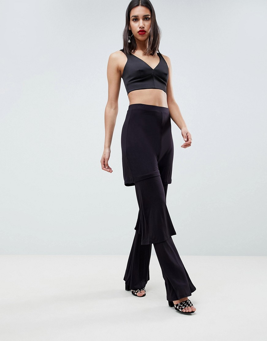 Czarne warstwowe damskie spodnie z falbanką 42