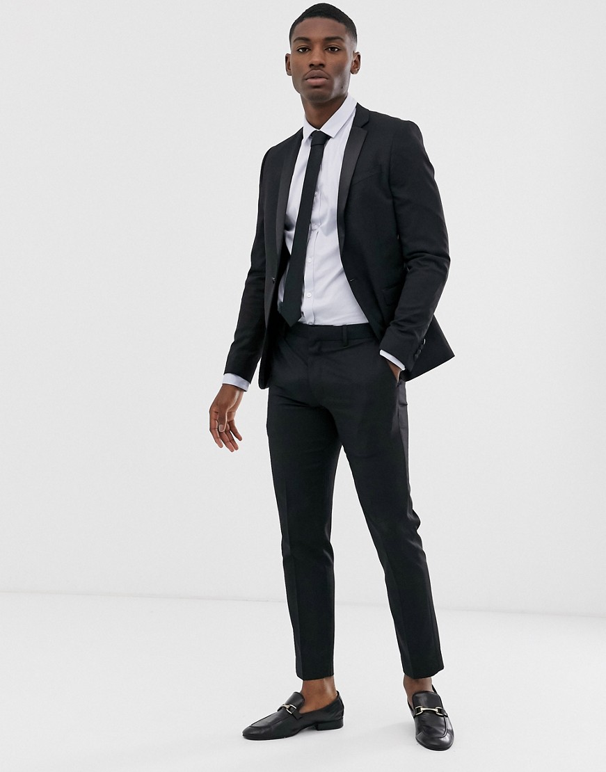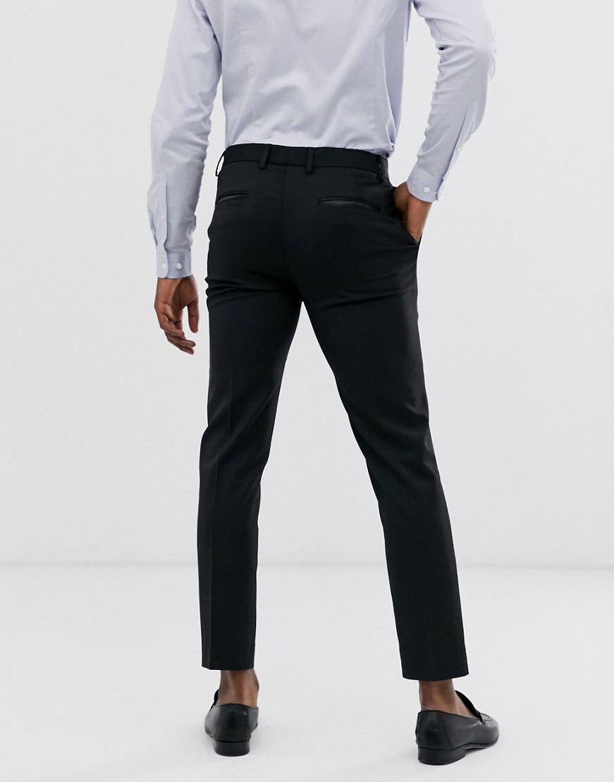 Czarne wełniane spodnie smokingowe o obcisłym kroju W32 L32