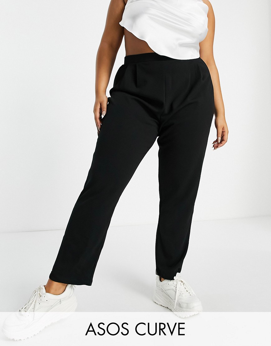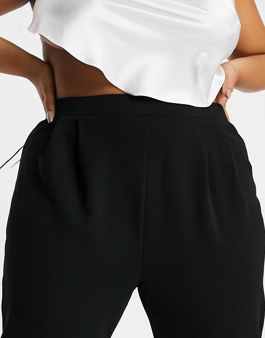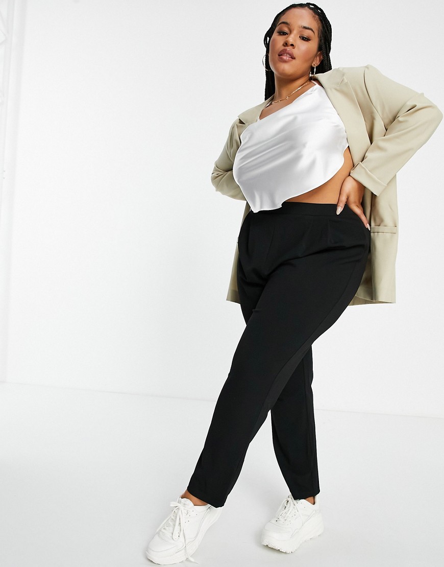 Czarne zwężane spodnie garniturowe z dżerseju 48