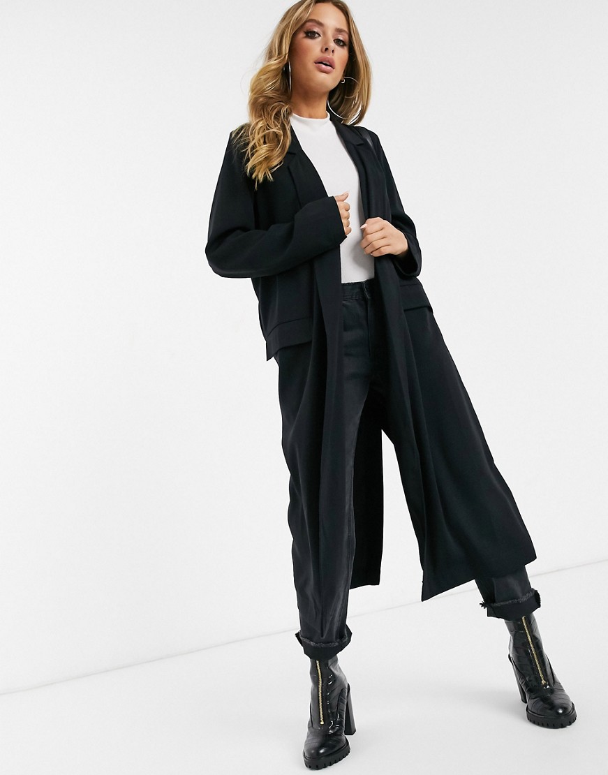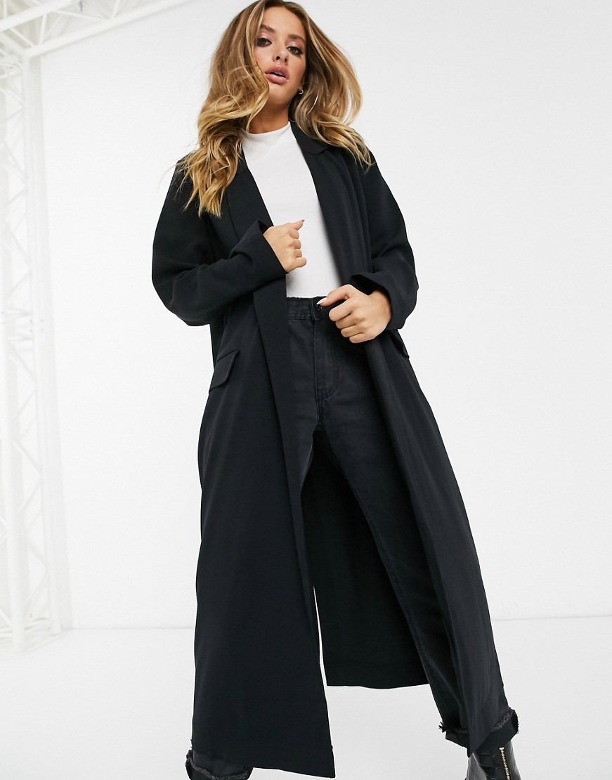 Czarny cienki dlugi płaszcz damski typu duster 34