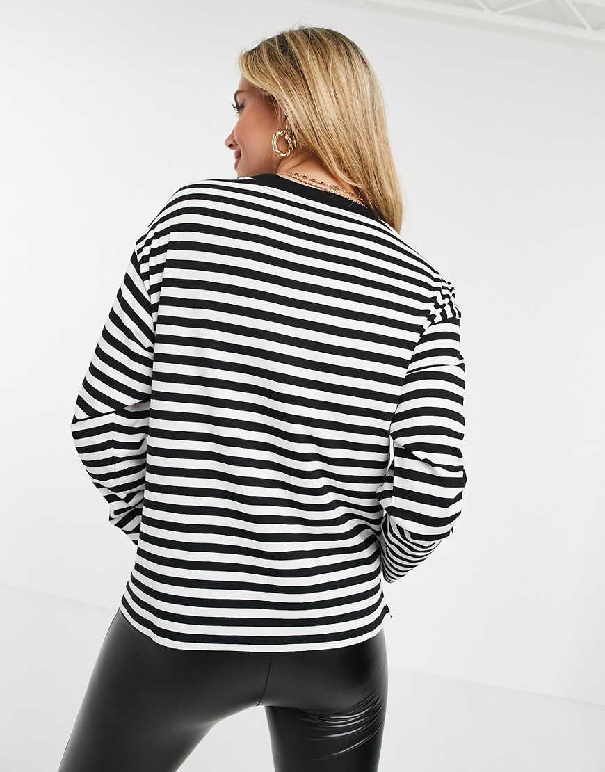 Czarny damski t-shirt w paski z długim rękawem XS