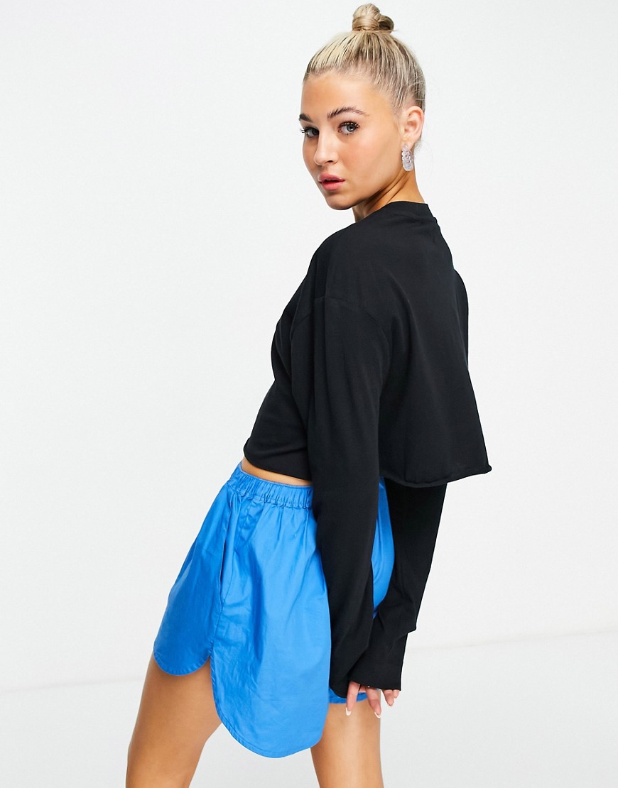 Czarny damskie krótki t-shirt z długi rękaw longsleeve basic 38