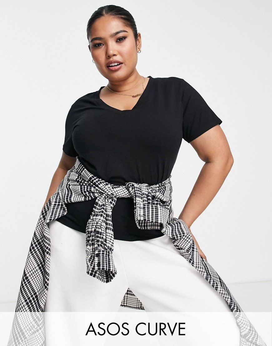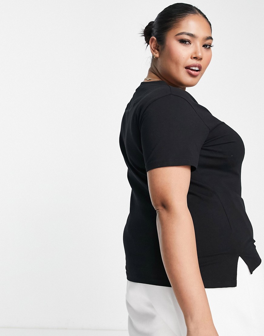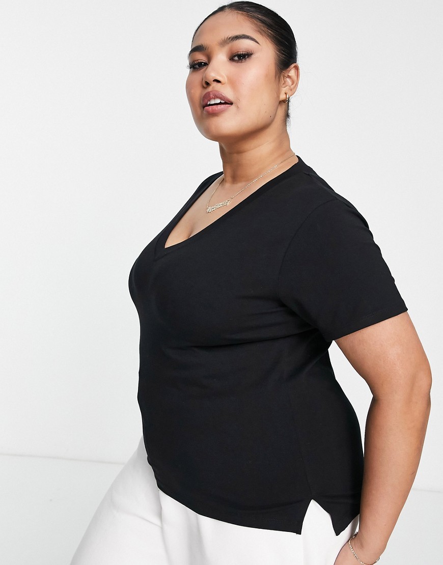 Czarny dopasowany T-shirt z szerokim dekoltem w kształcie litery V 44