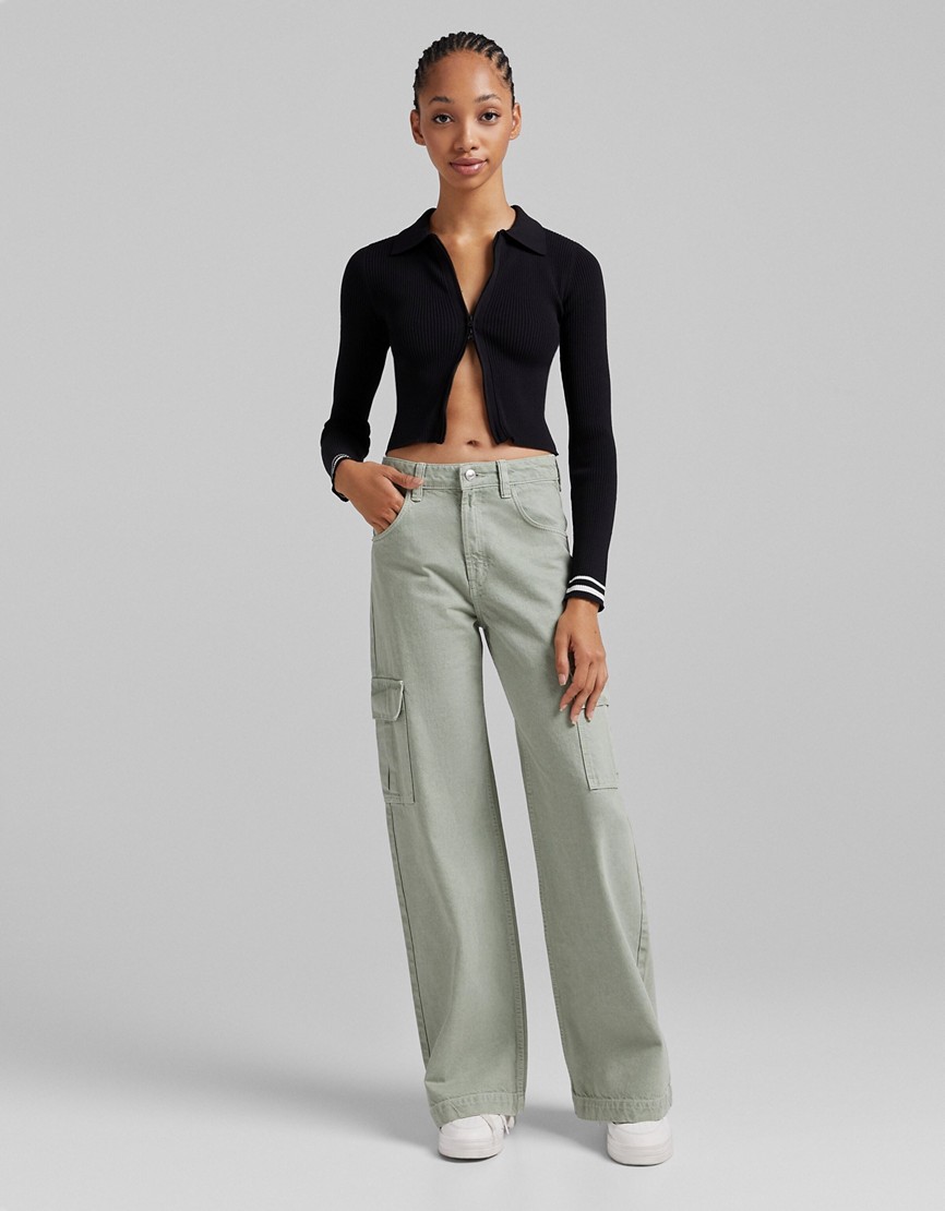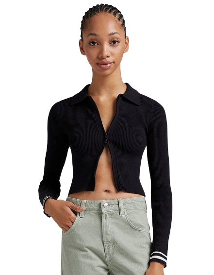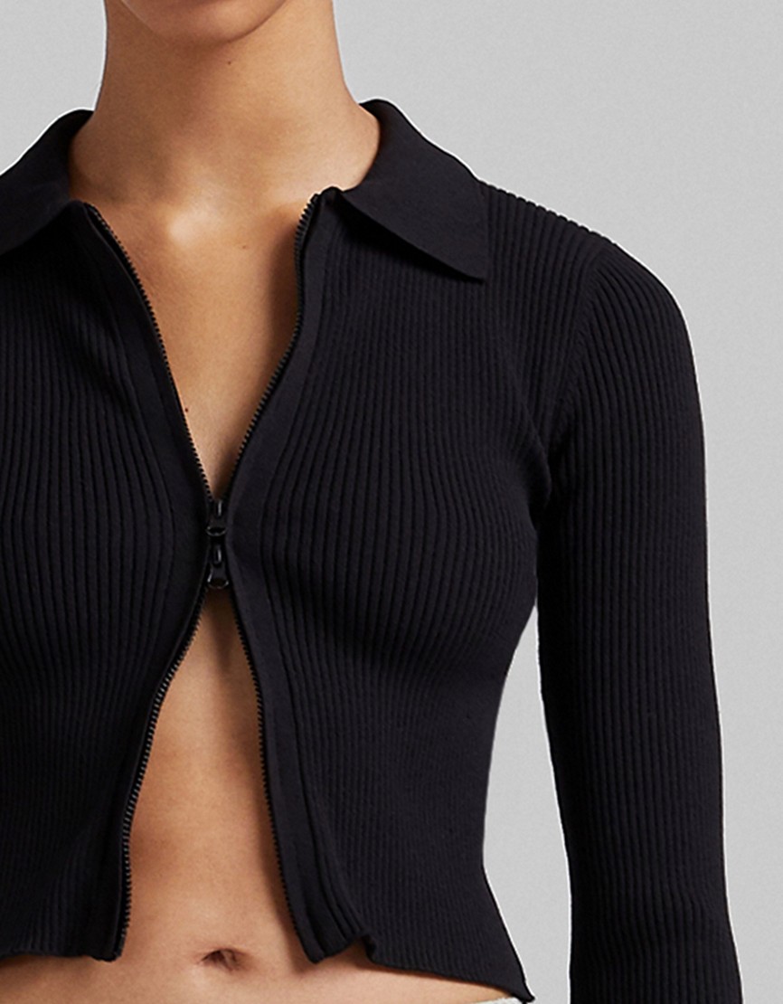 Czarny dzianinowy sweter z kołnierzykiem polo dwustronny suwak XS