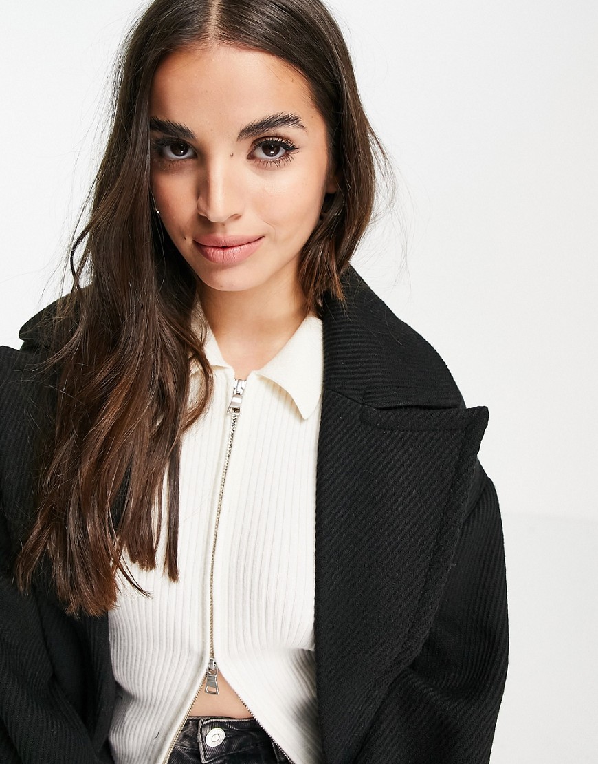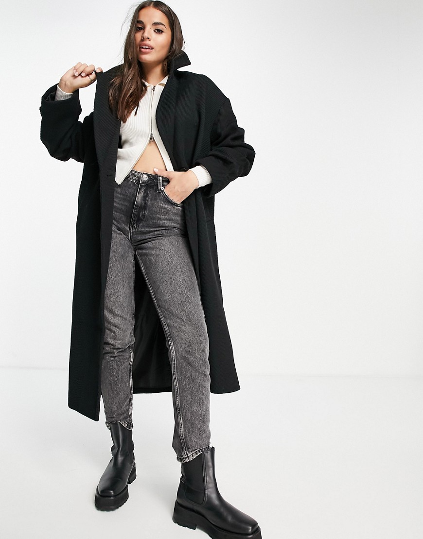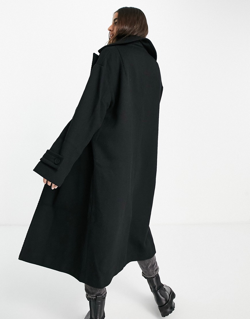 Czarny elegancki płaszcz maxi oversize z diagonalu 38