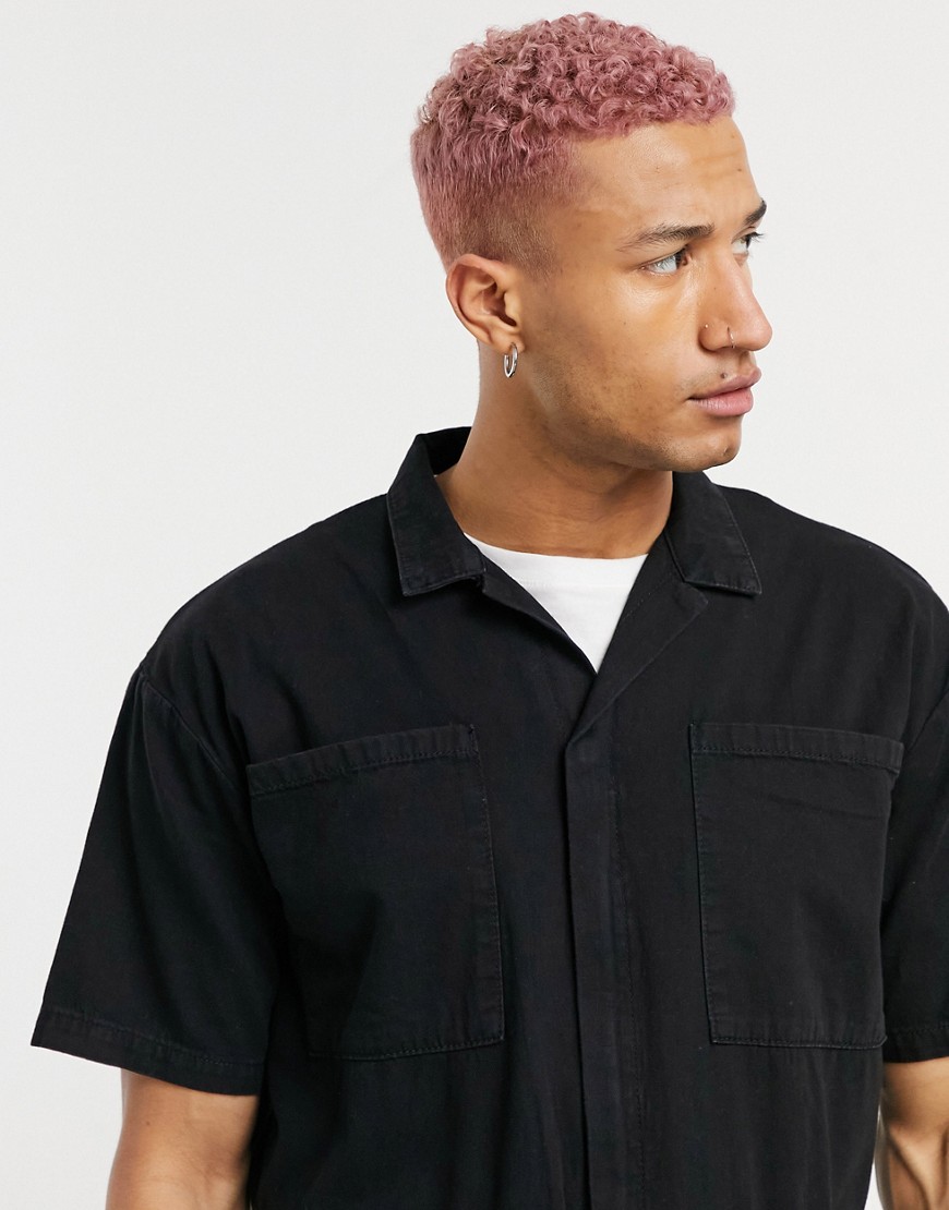Czarny jeansowy kombinezon z efektem sprania S