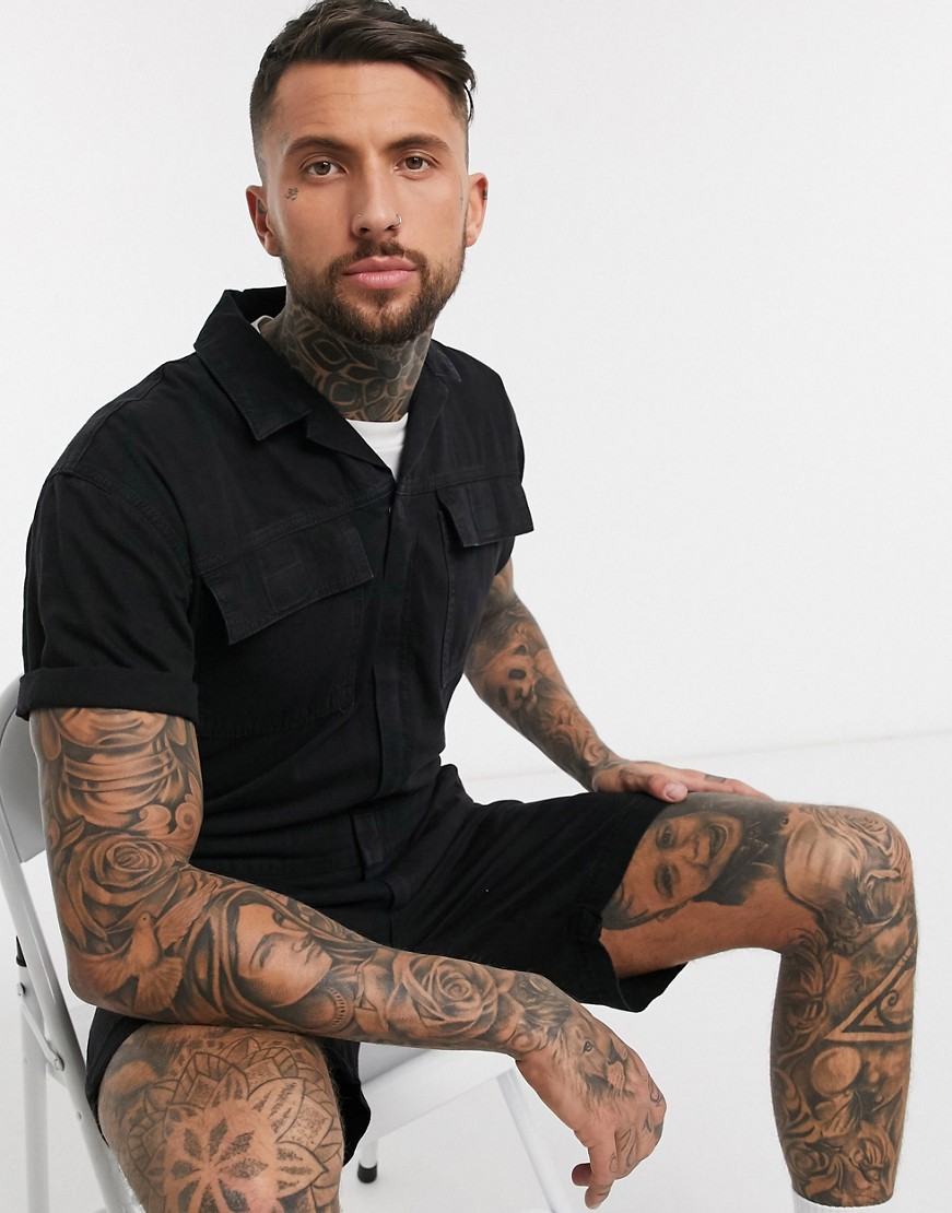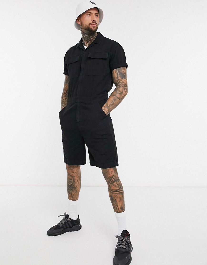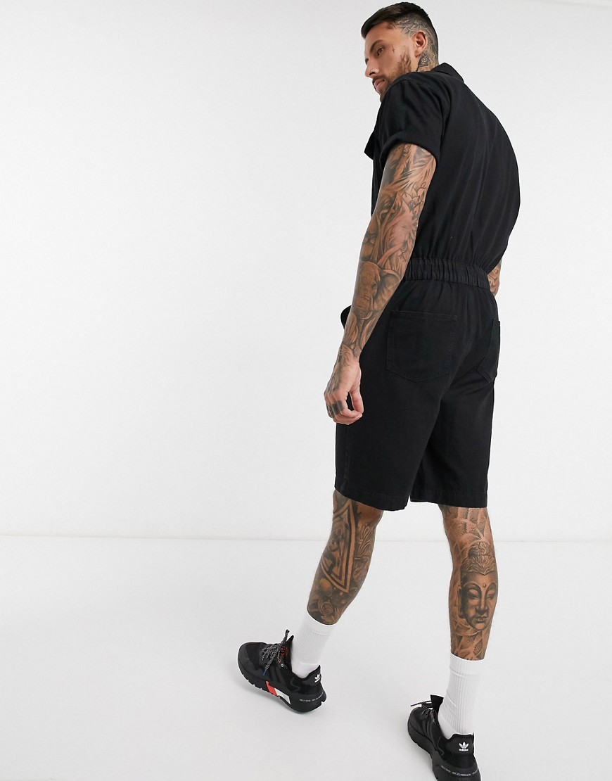 Czarny krótki kombinezon denimowy z kieszeniami XS