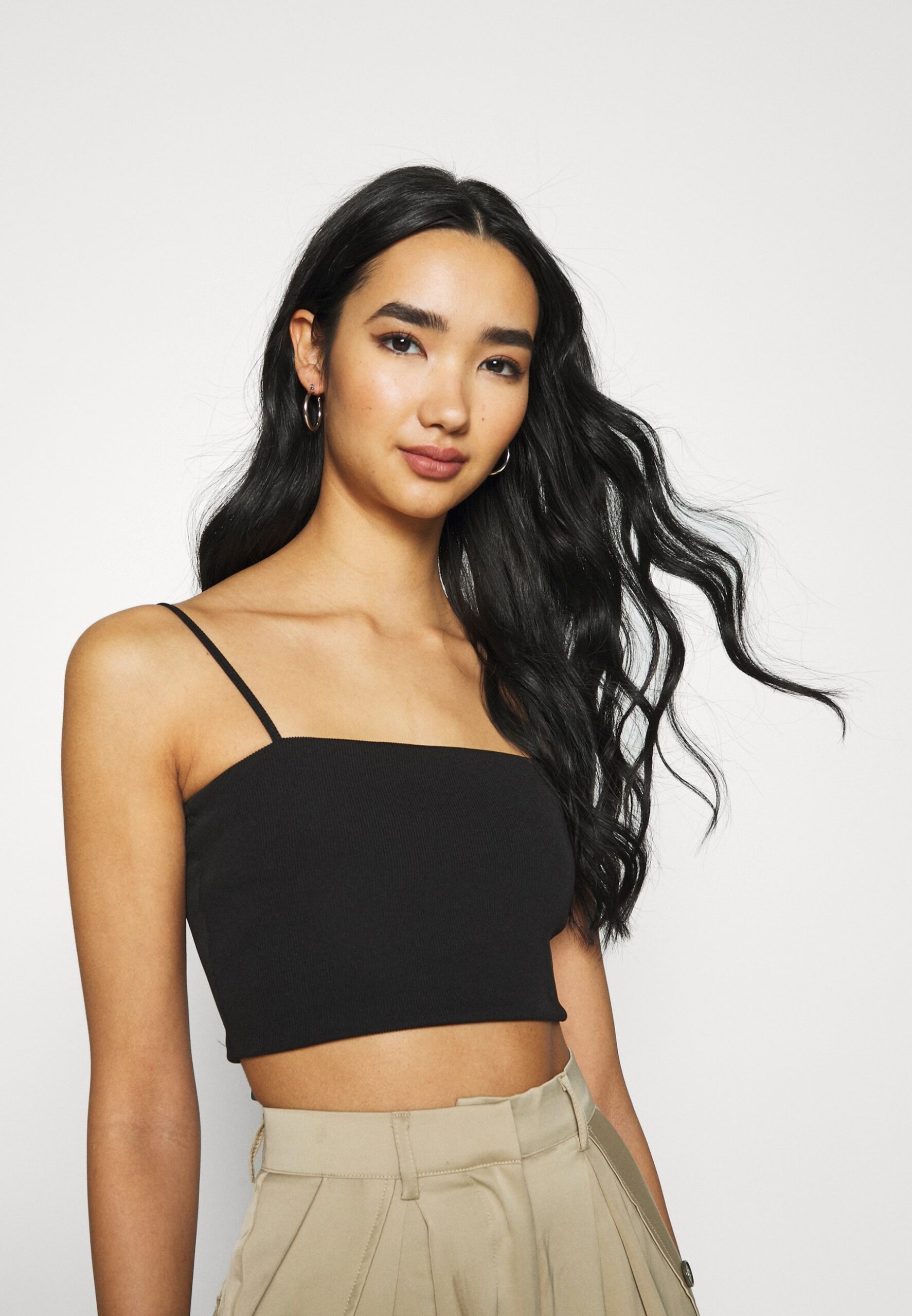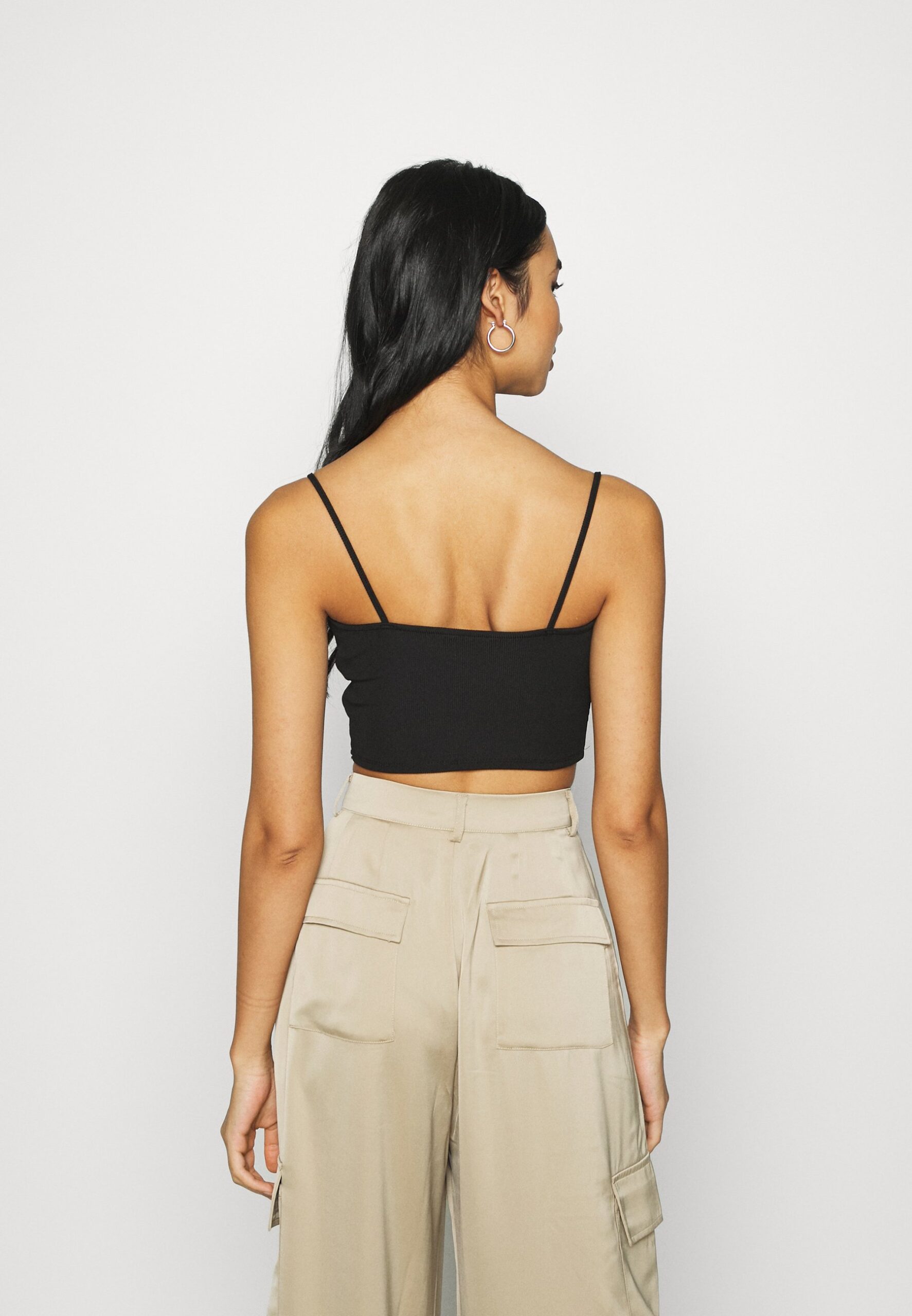 CZarny krótki prążkowany top na ramiączkach XS