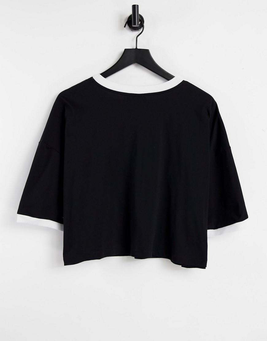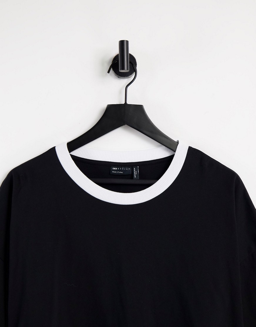 Czarny krótki T-shirt z kontrastowym wykończeniem 46