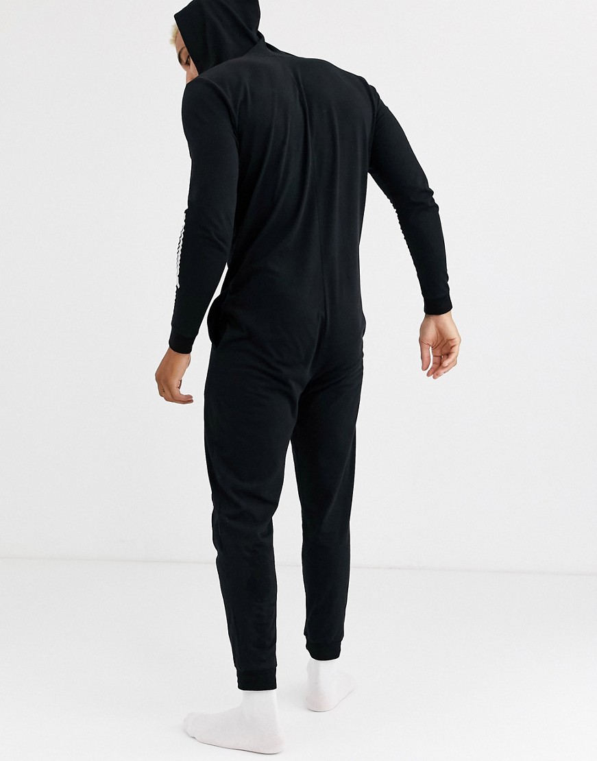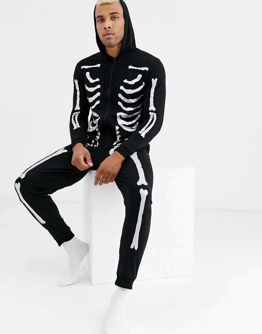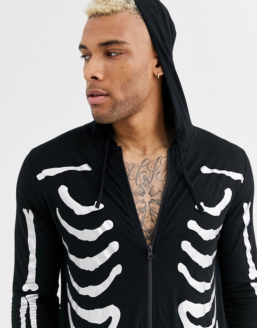 Czarny ombinezon z kapturem z motywem szkieletu halloween defekt S