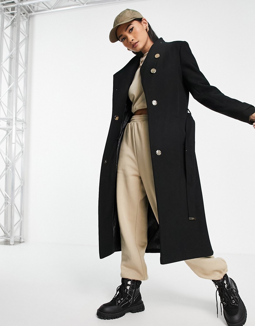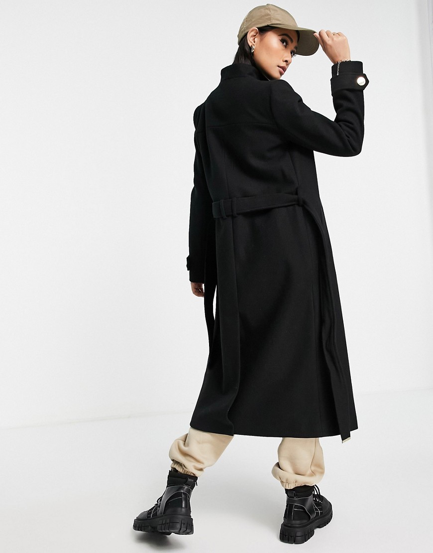 Czarny płaszcz kopertowy ze stójką 42