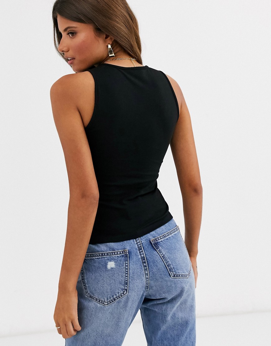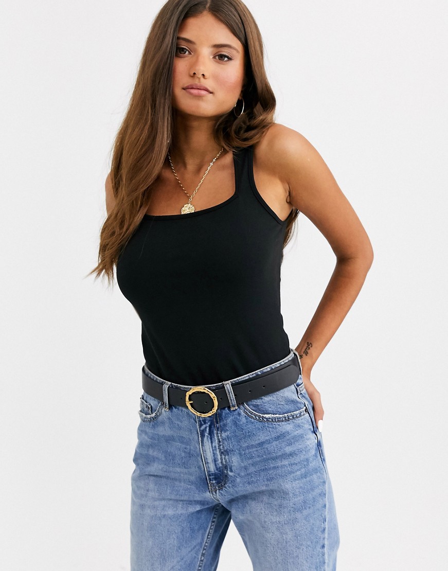 Czarny podkoszulek z kwadratowym dekoltem 40