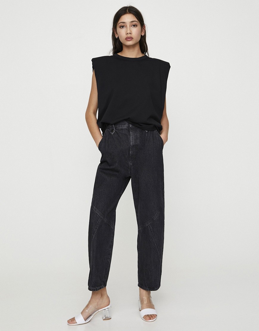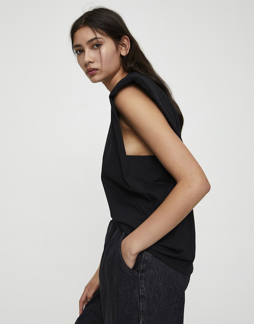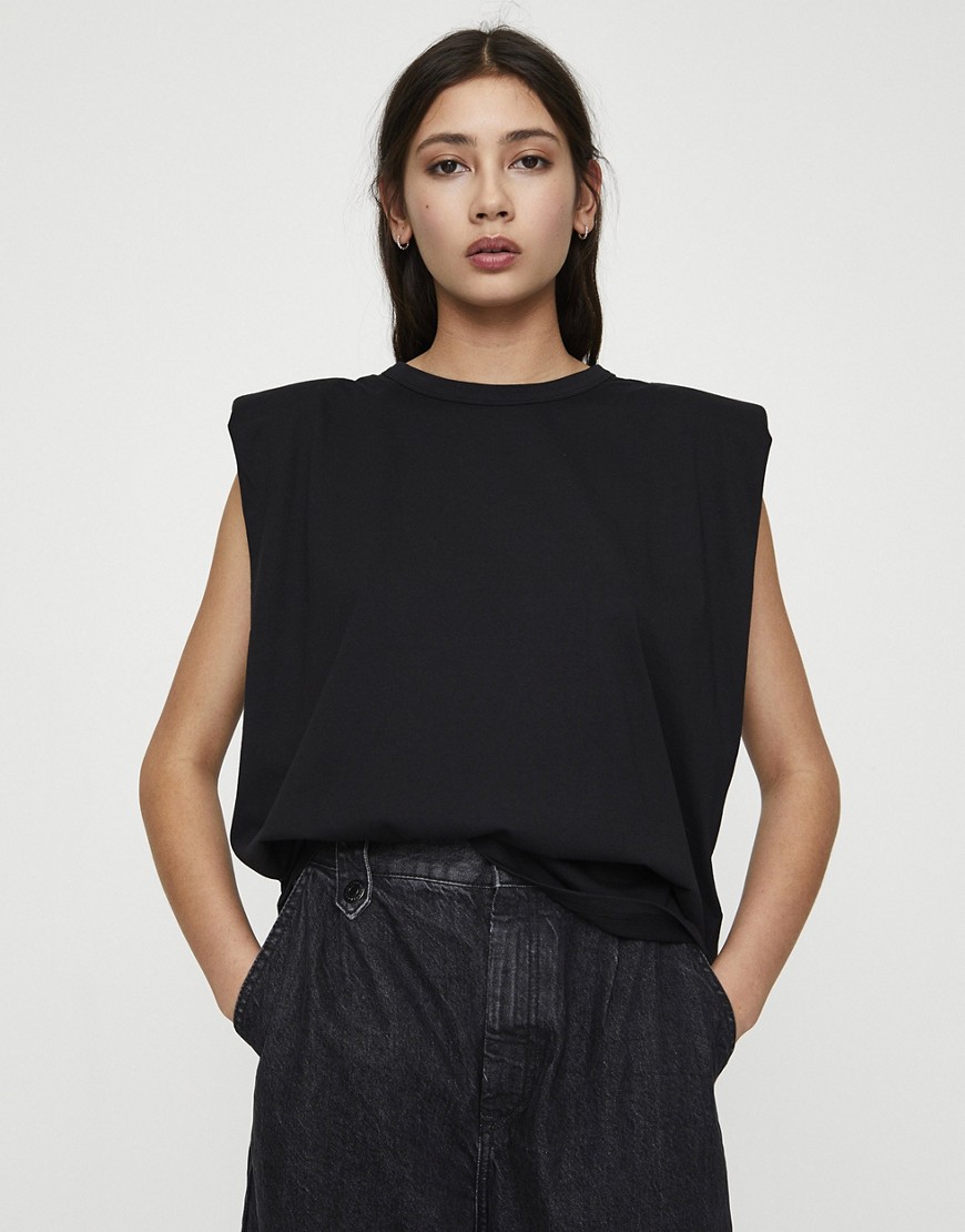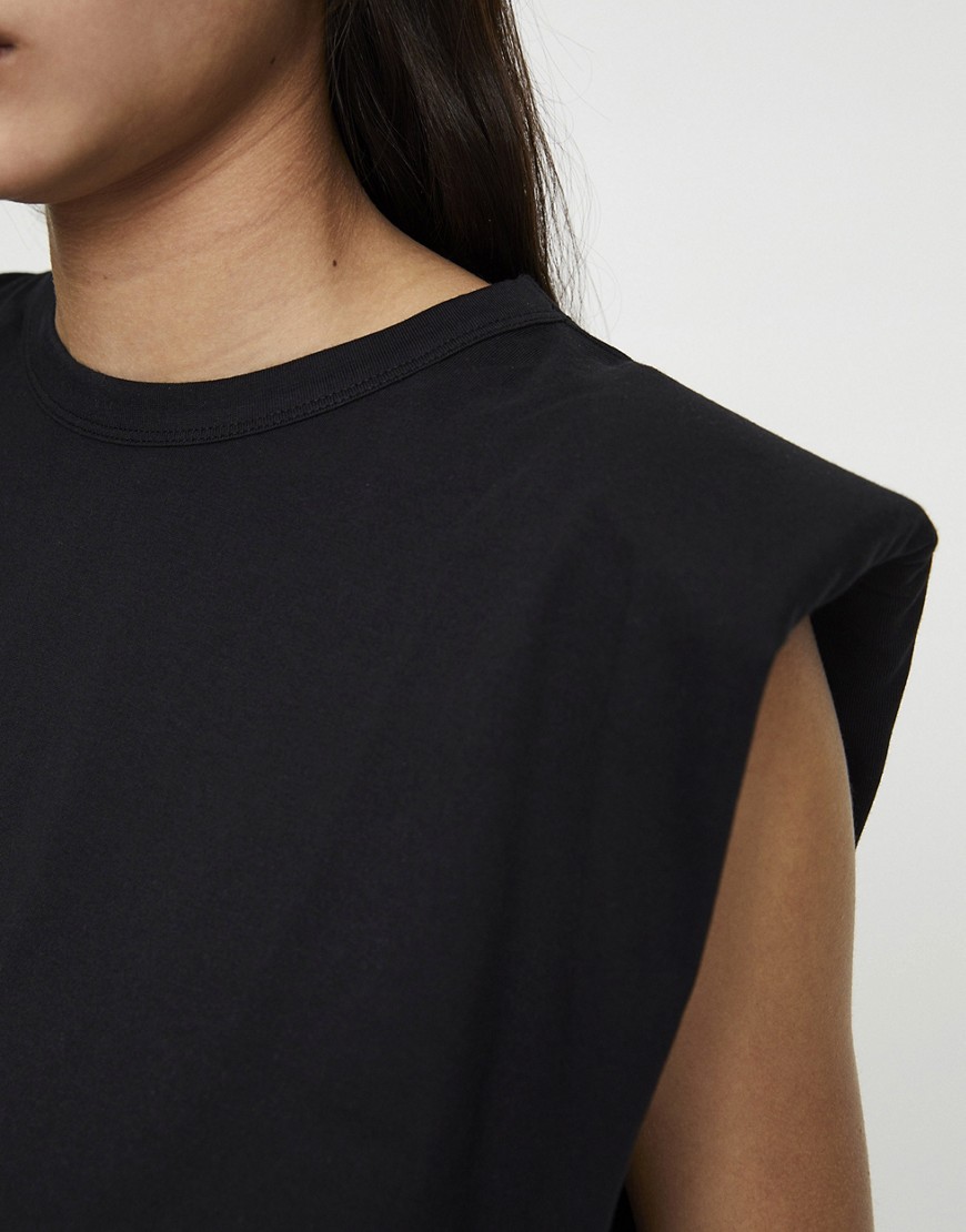 Czarny podkoszulek z poduszkami na ramionach bez rękawów M