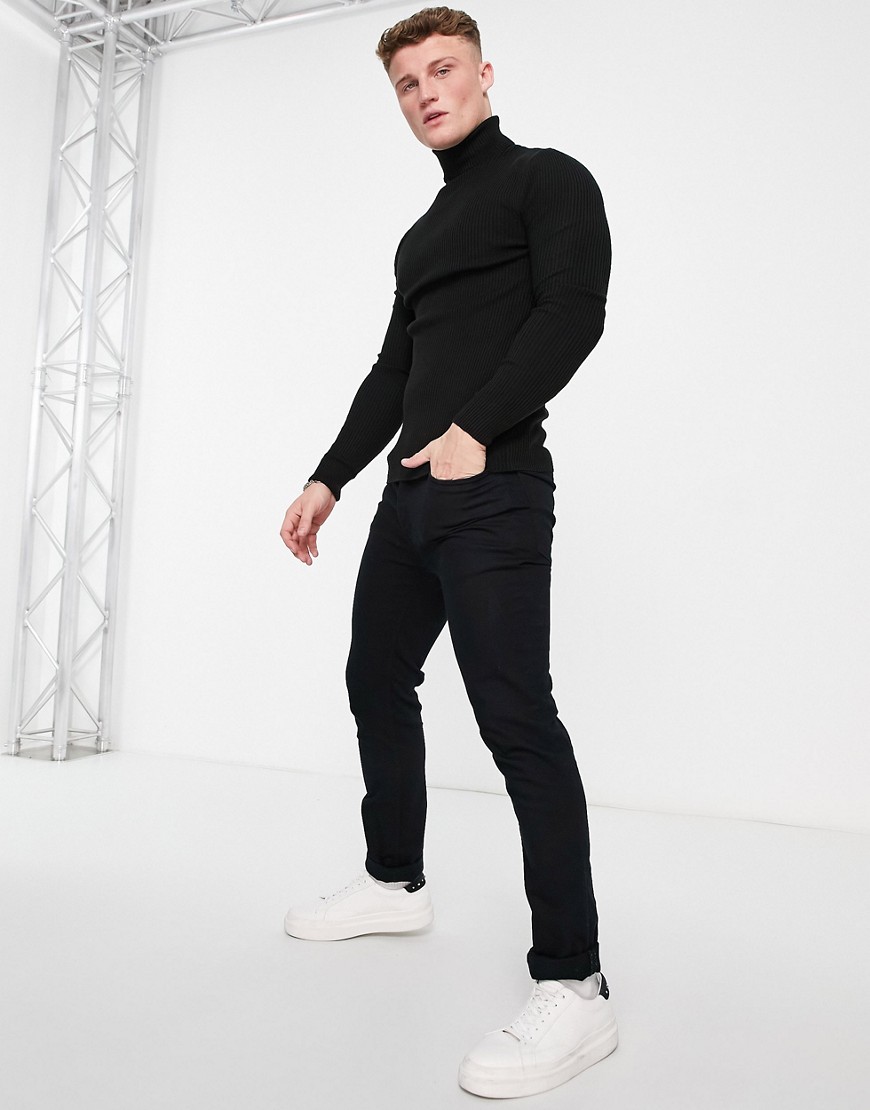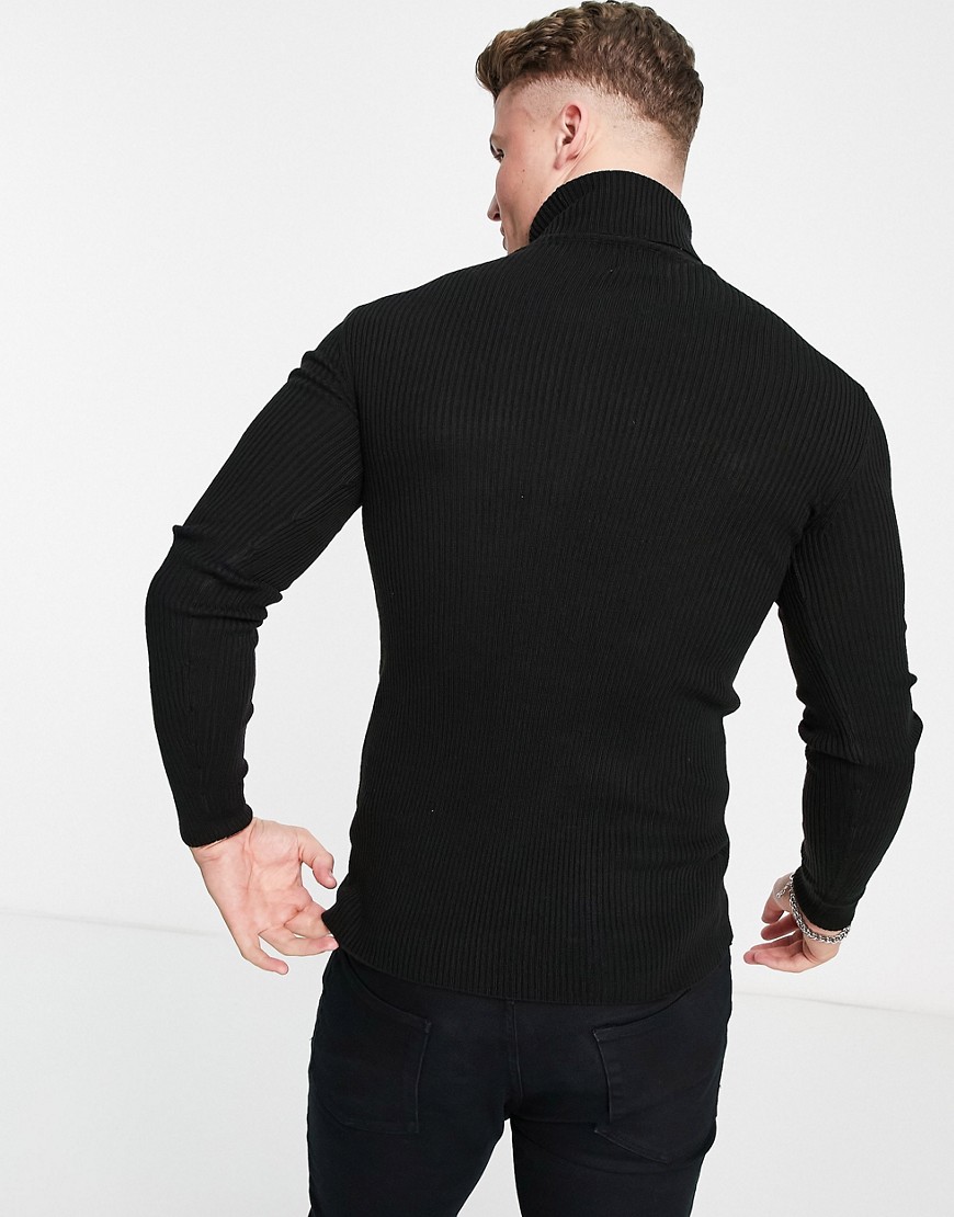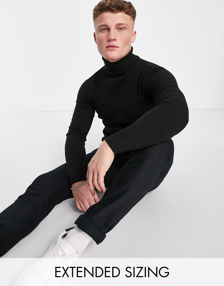 Czarny prążkowany męski sweter z golfem L