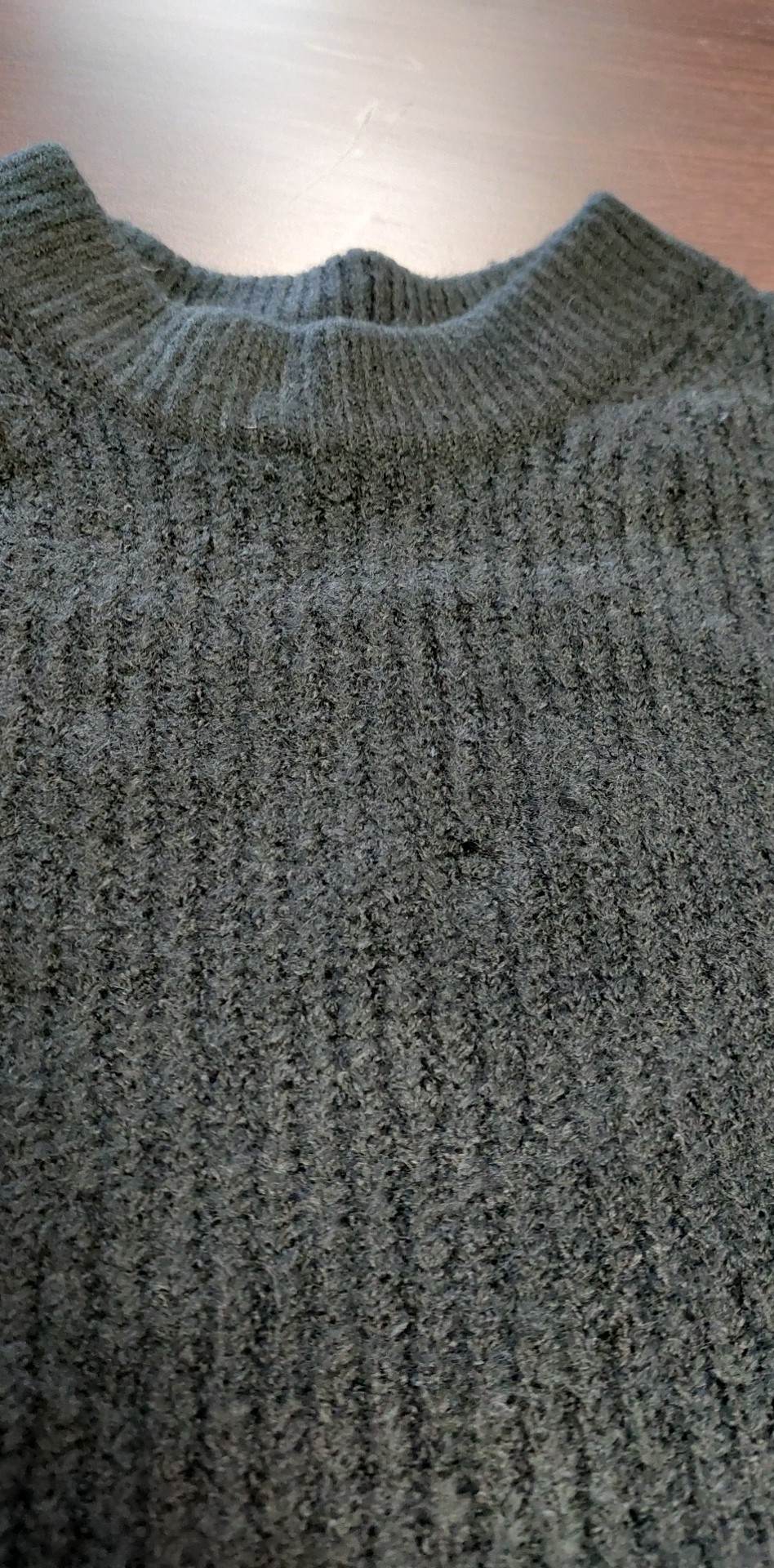Czarny prążkowany sweter z puszystej przędzy z okrągłym dekoltem defekt 40