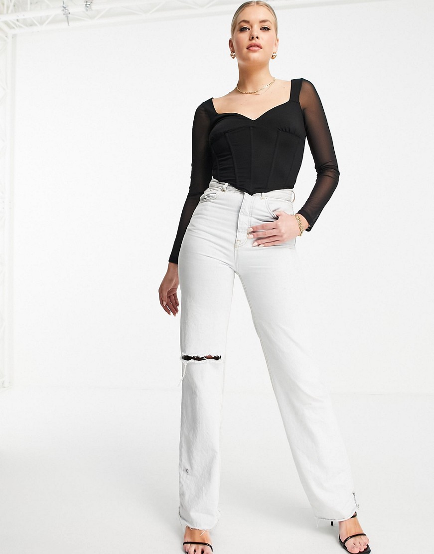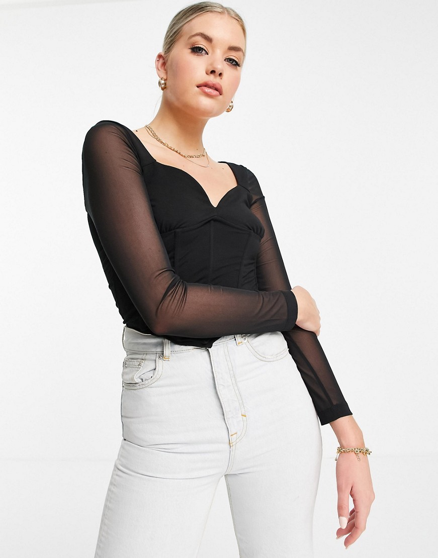 Czarny siateczkowy gorset z dekoltem w kształcie serca 40