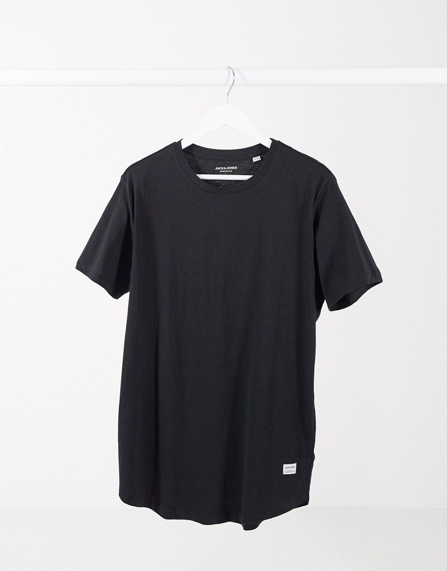 Czarny t-shirt o wydłużonym fasonie i zaokrąglonym dole XL